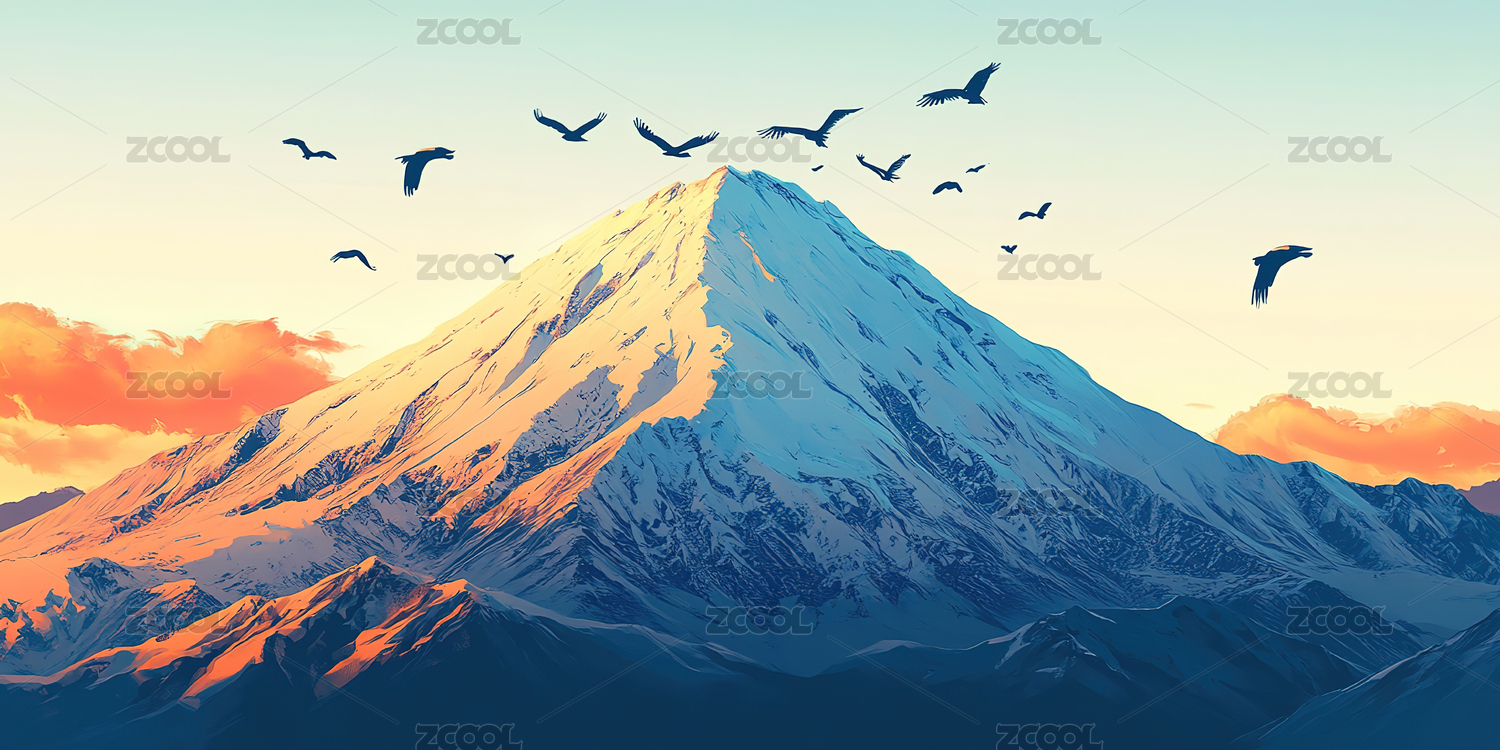 色彩斑斓的雪山与流线型天空