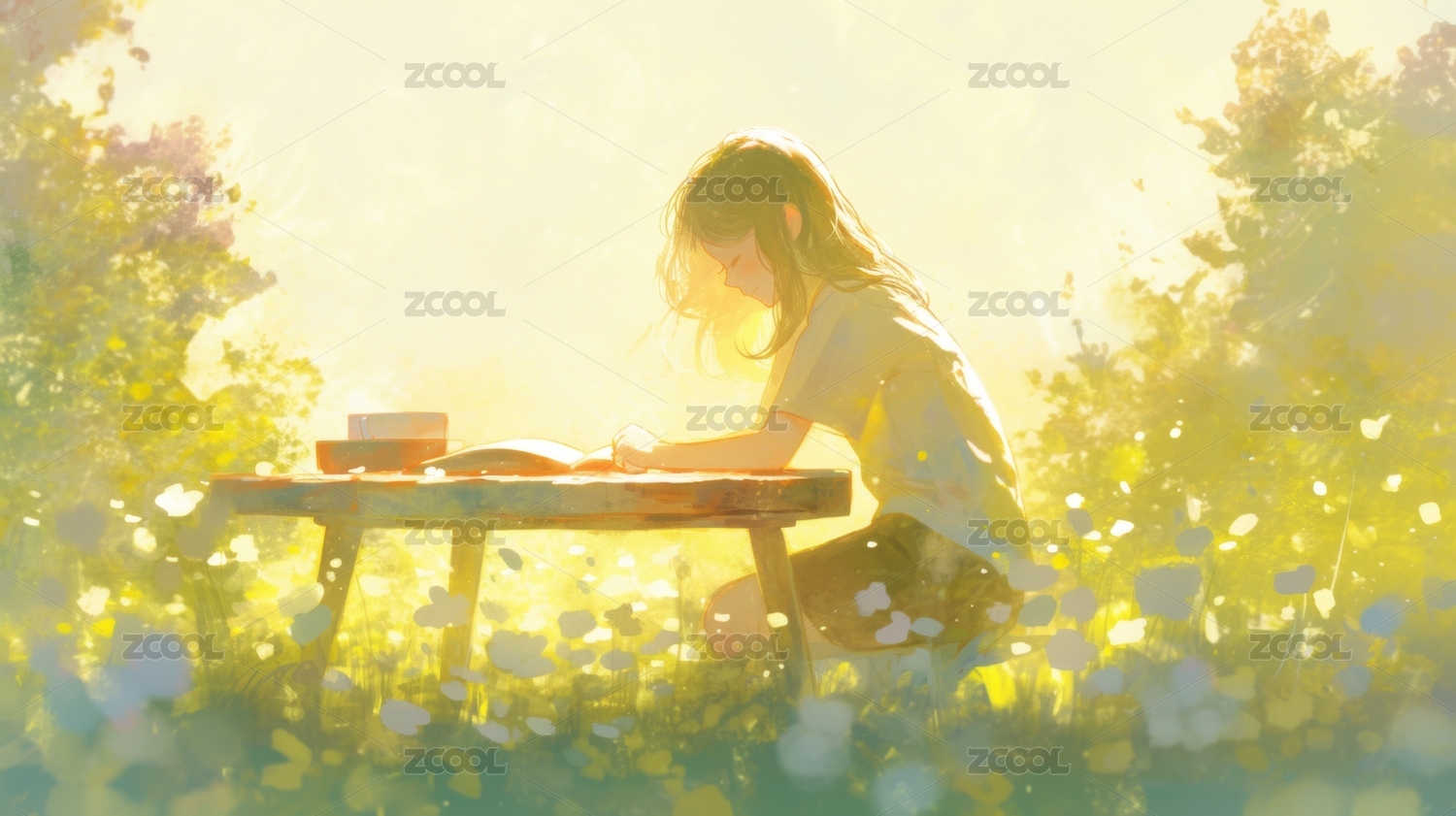 插画,艺术,自然,绘画,秋天,水彩画,树木,风景画,女孩,写实