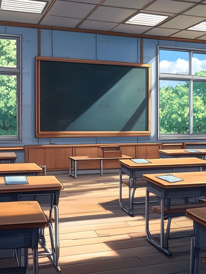 风景,阳光,插画,壁纸,背景,AIGC,空间,光线,教室,椅子