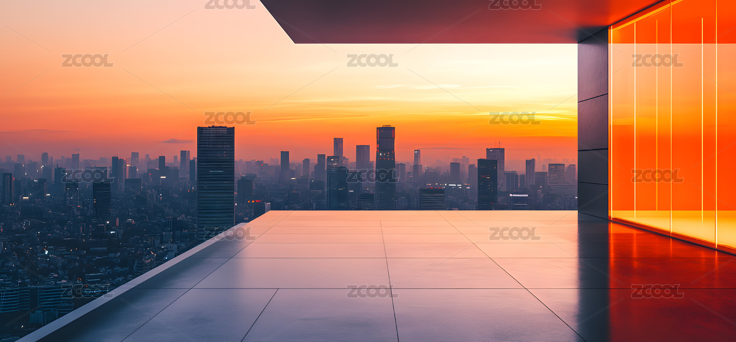 简约,办公楼,商务,空间,俯瞰,日落,天际线,楼顶,灯光,景观