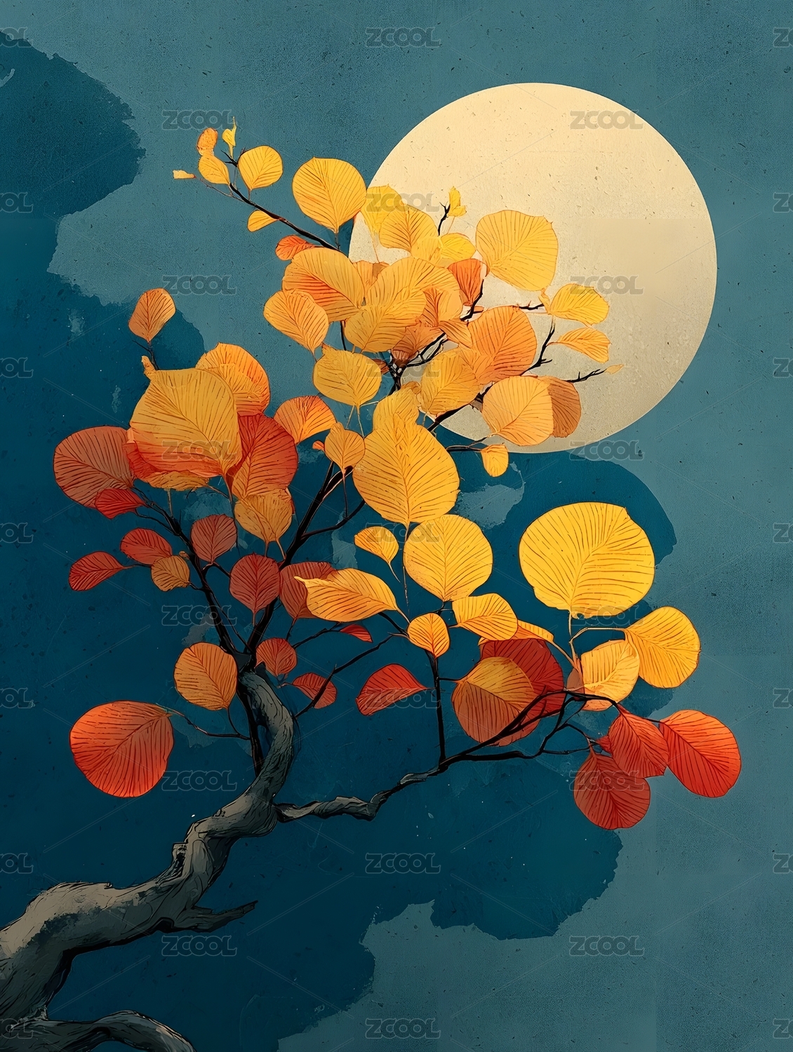 艺术,立体,现代,自然,风景,油画,树叶,秋天,金黄,色彩