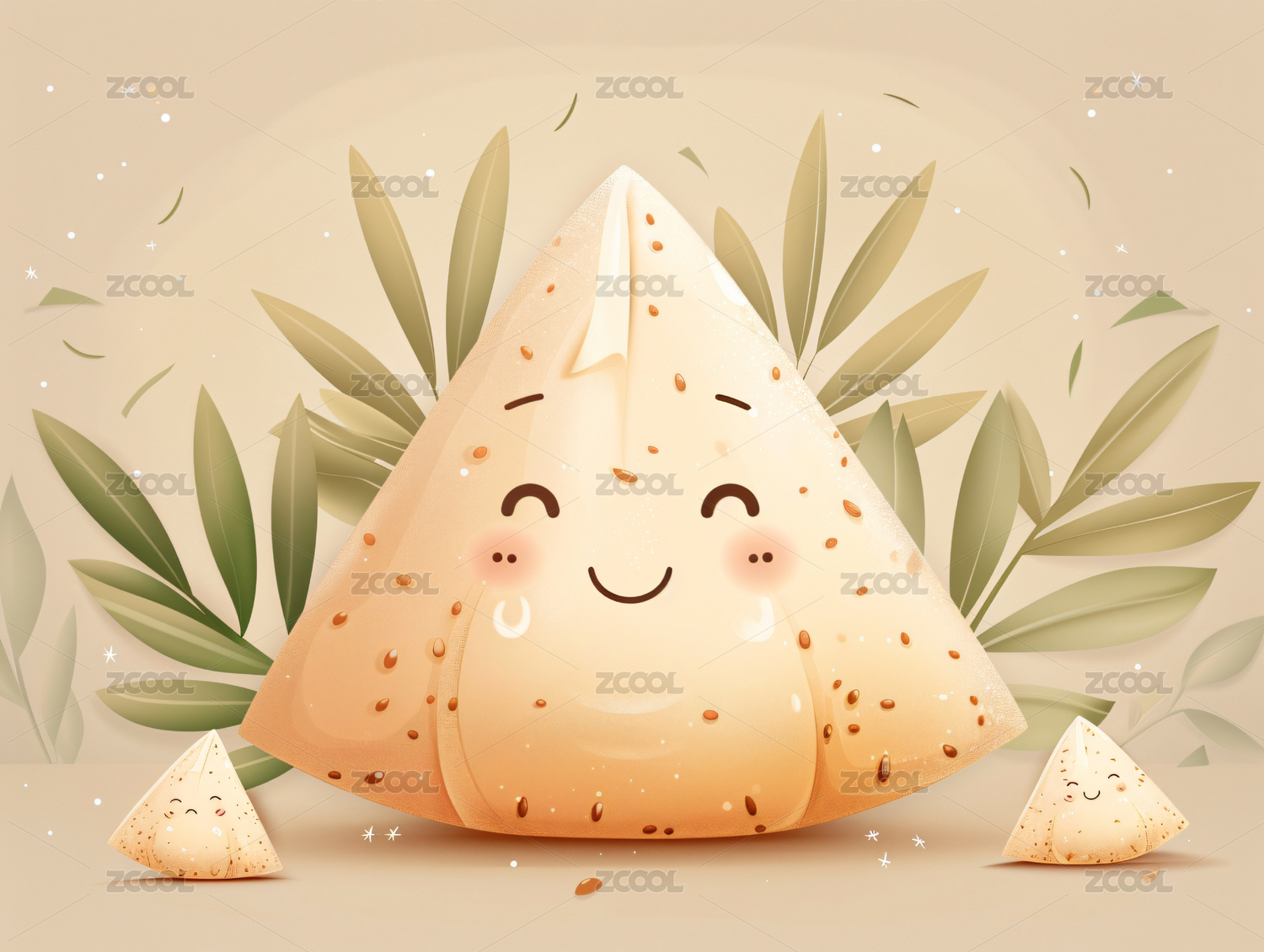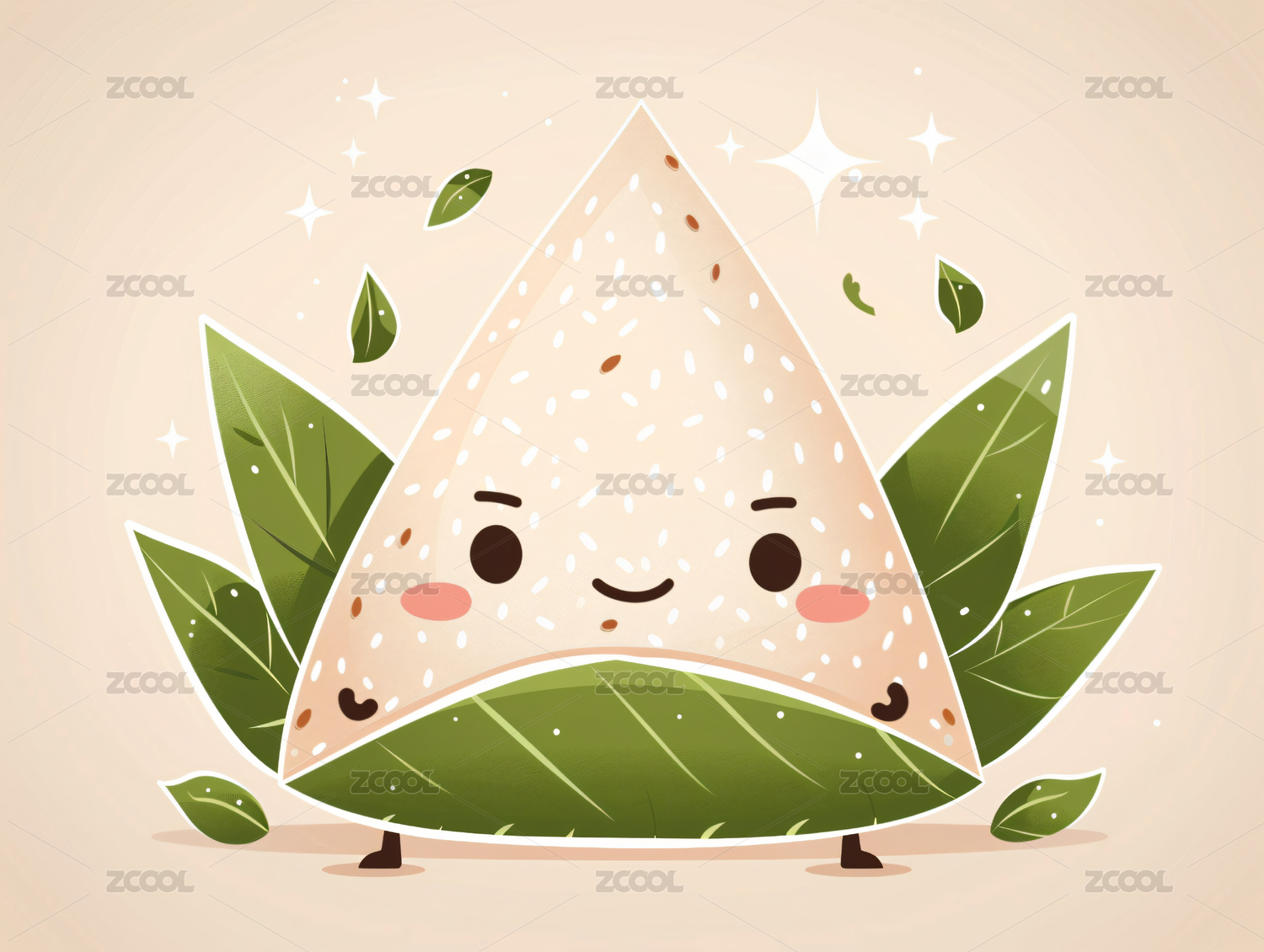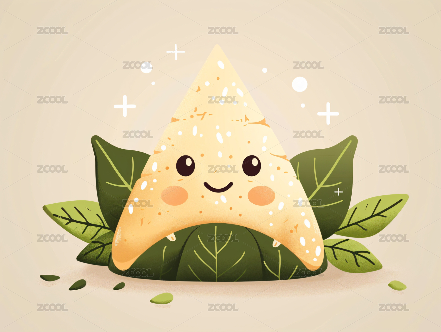 粽子,卡通,粽叶,竹篮,绿色,黄色,表情,叶片,装饰,传统