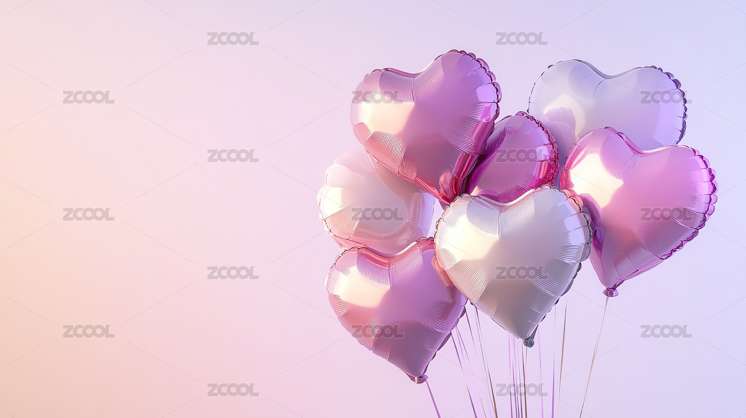 浪漫爱心气球的柔美节庆感