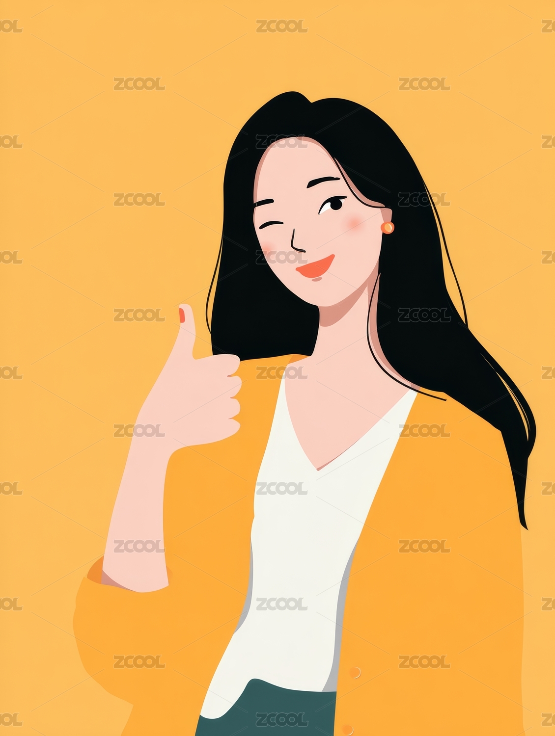 黄蓝少女时尚肖像大头照矢量扁平化设计背景