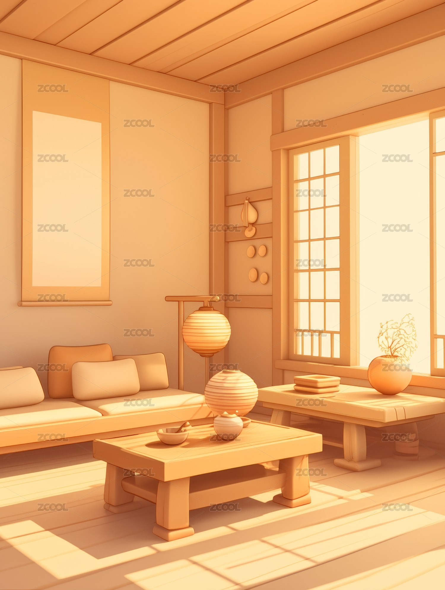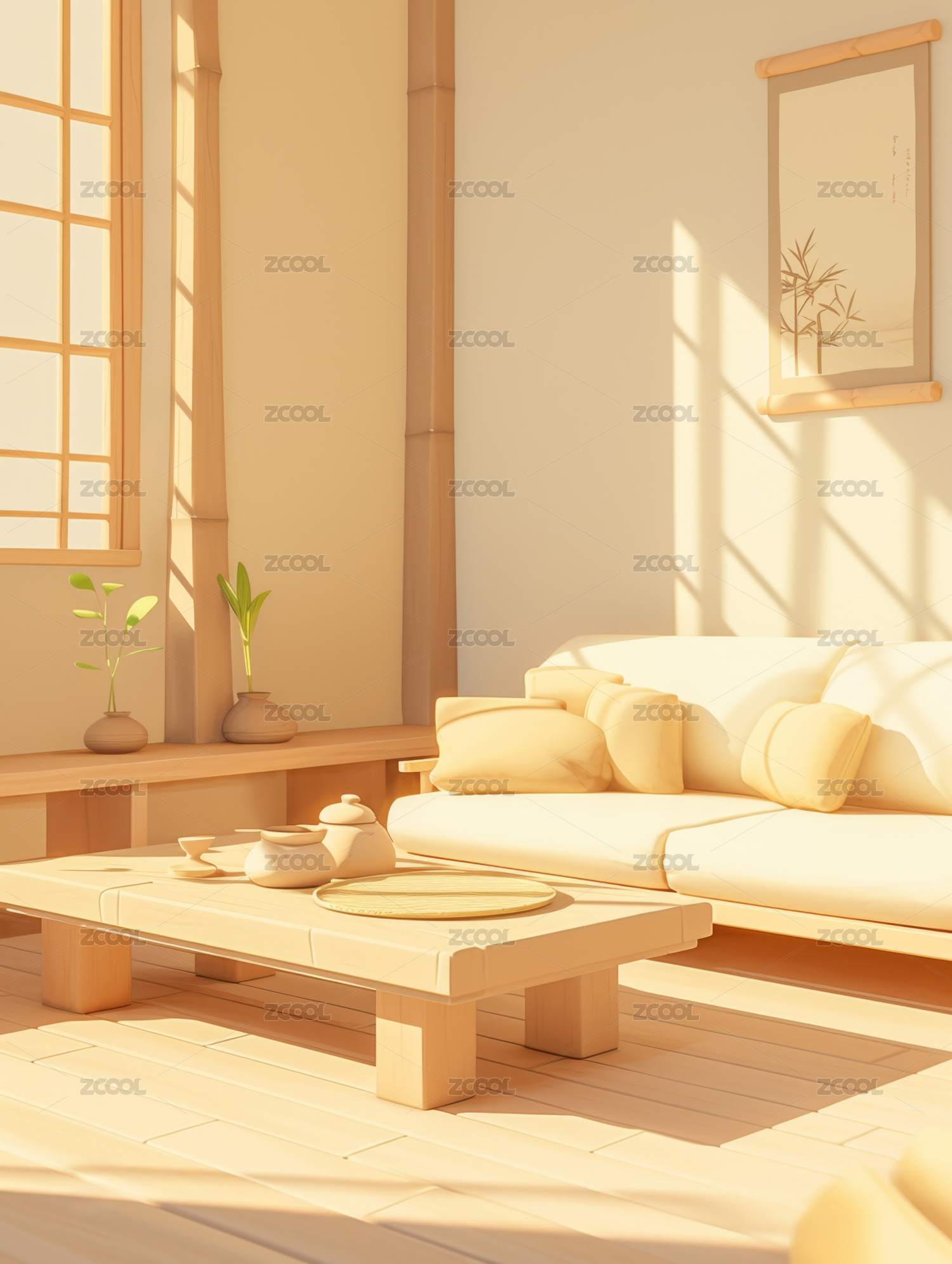 日式,客厅,茶具,沙发,窗户,榻榻米,装饰,家具,简约,温馨