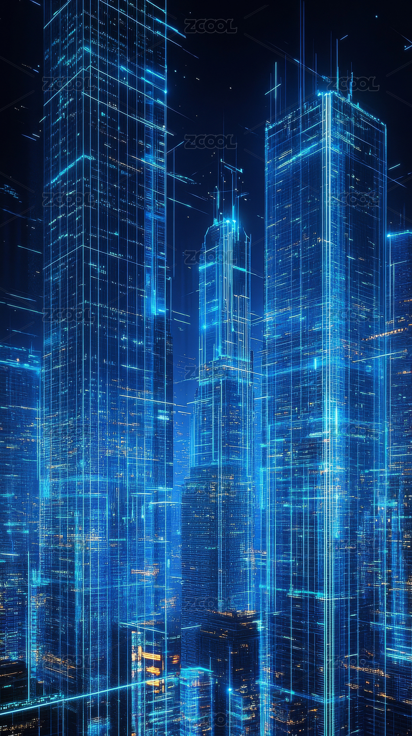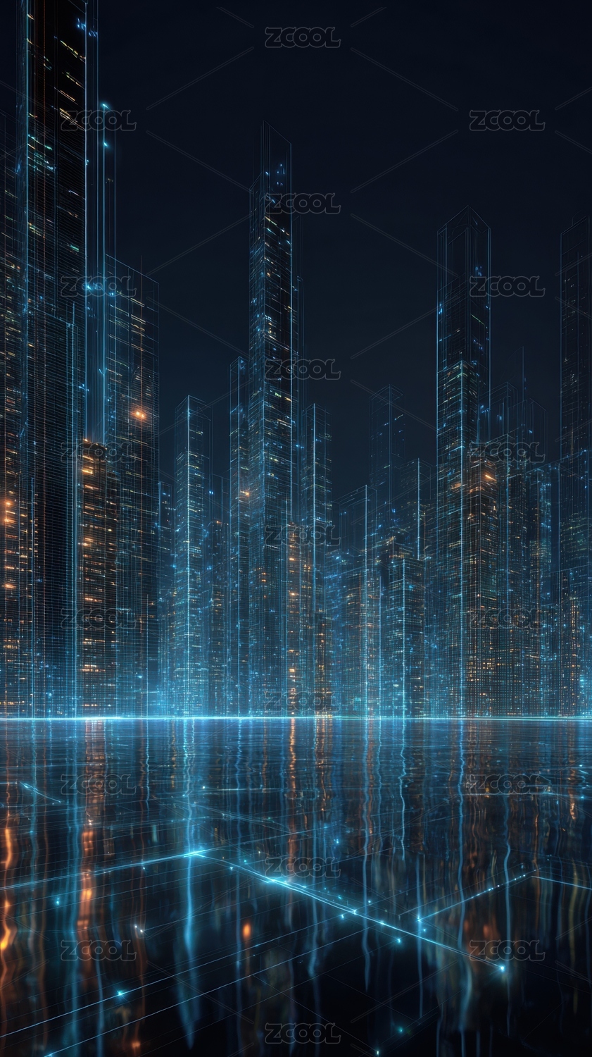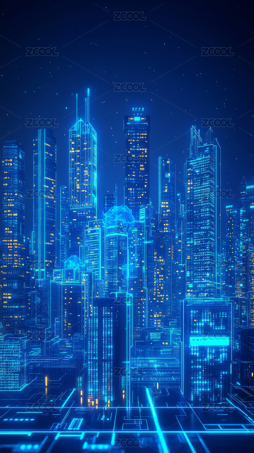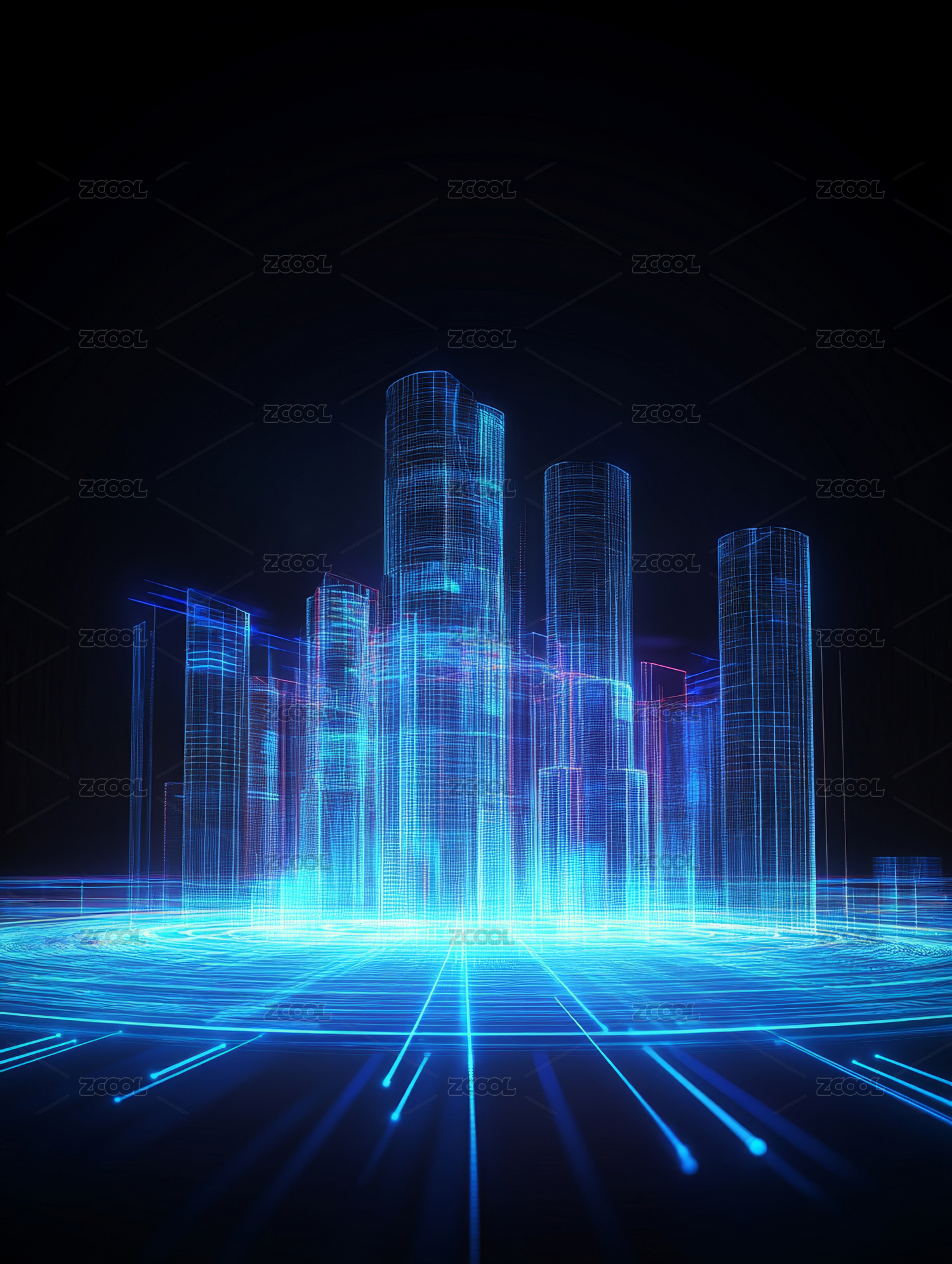 未来,城市,数字,蓝图,霓虹灯,科技感,建筑,模型,虚拟,现实