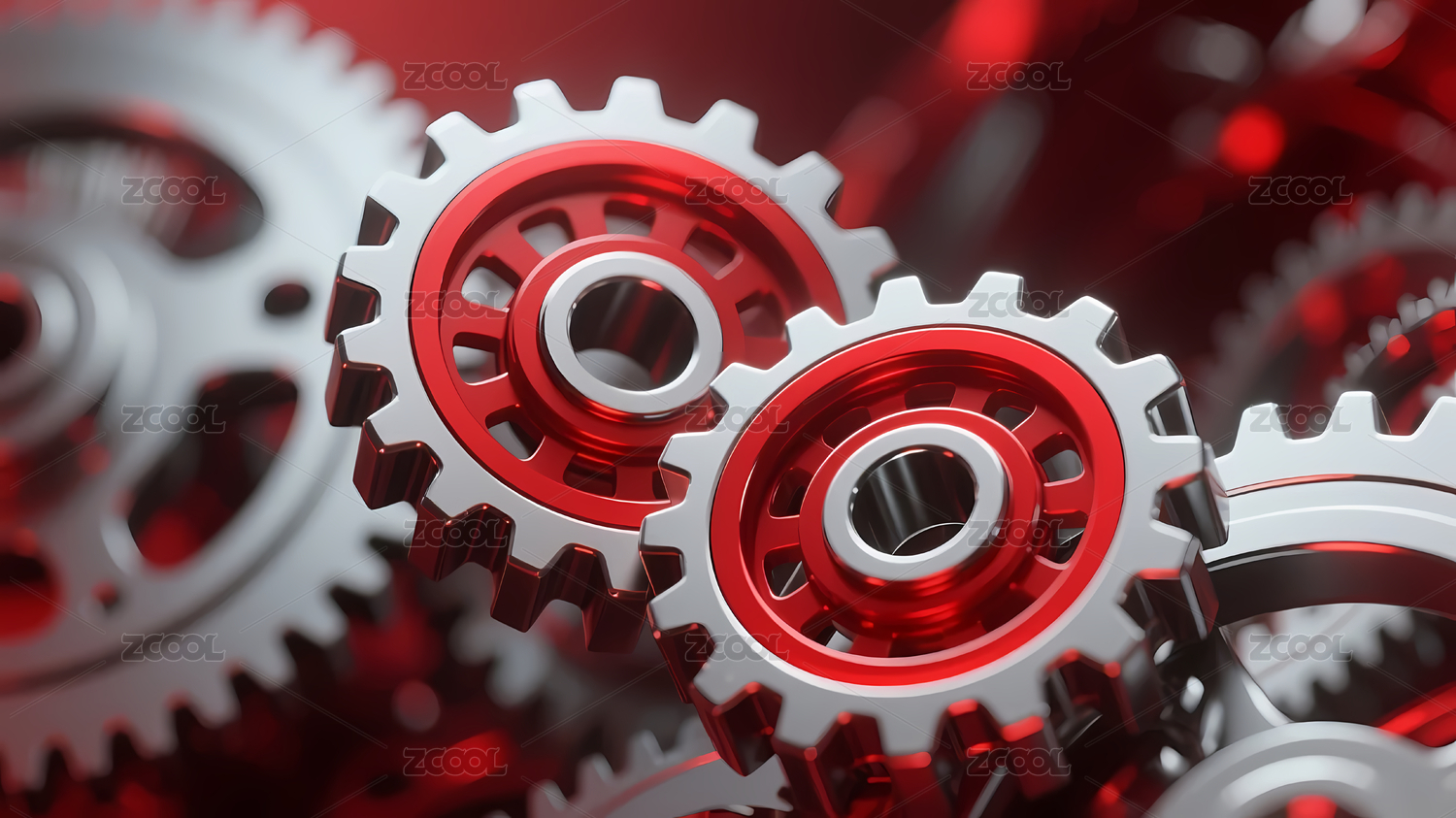 银色齿轮红色背景