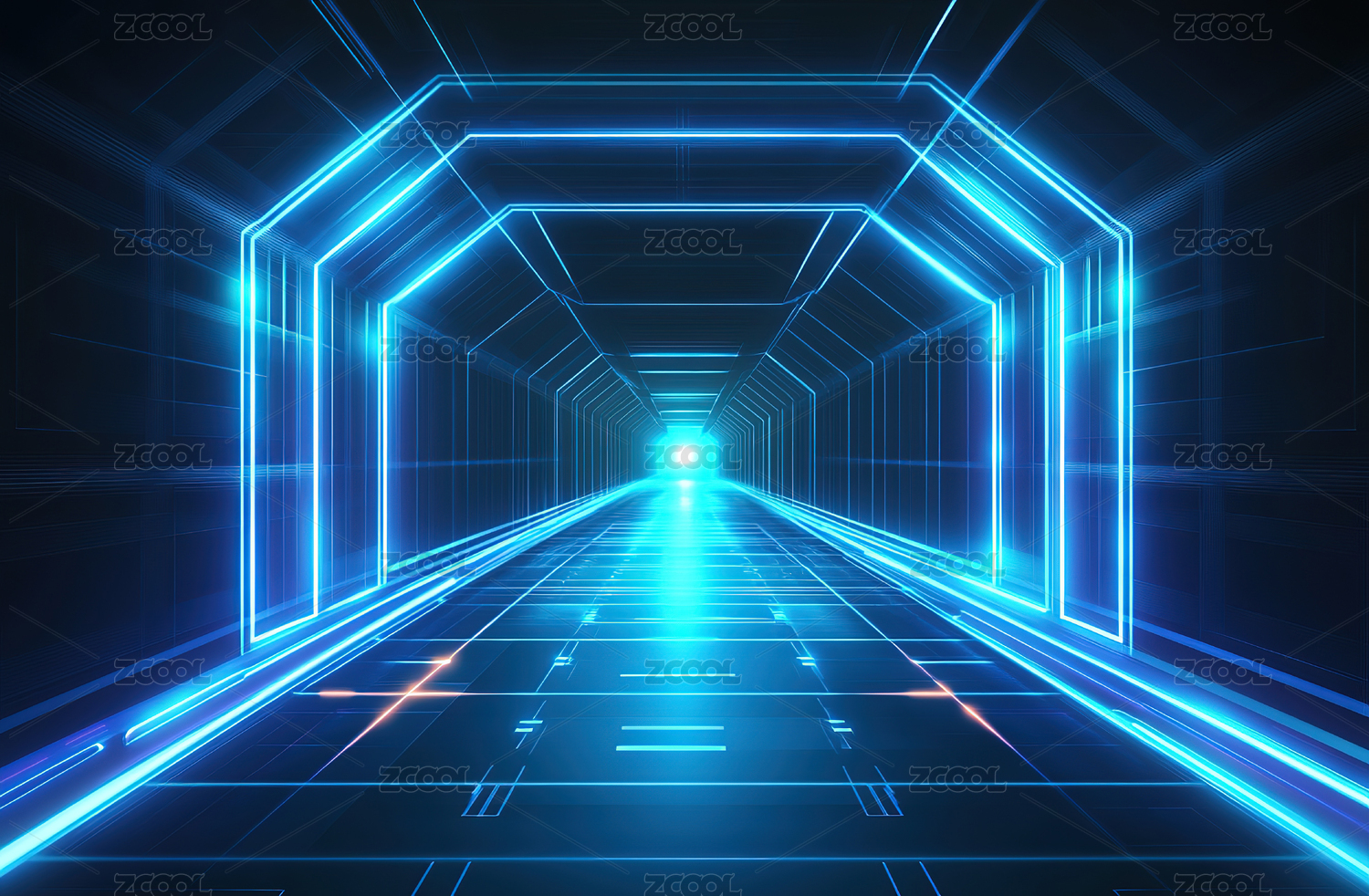 未来感蓝色霓虹几何隧道