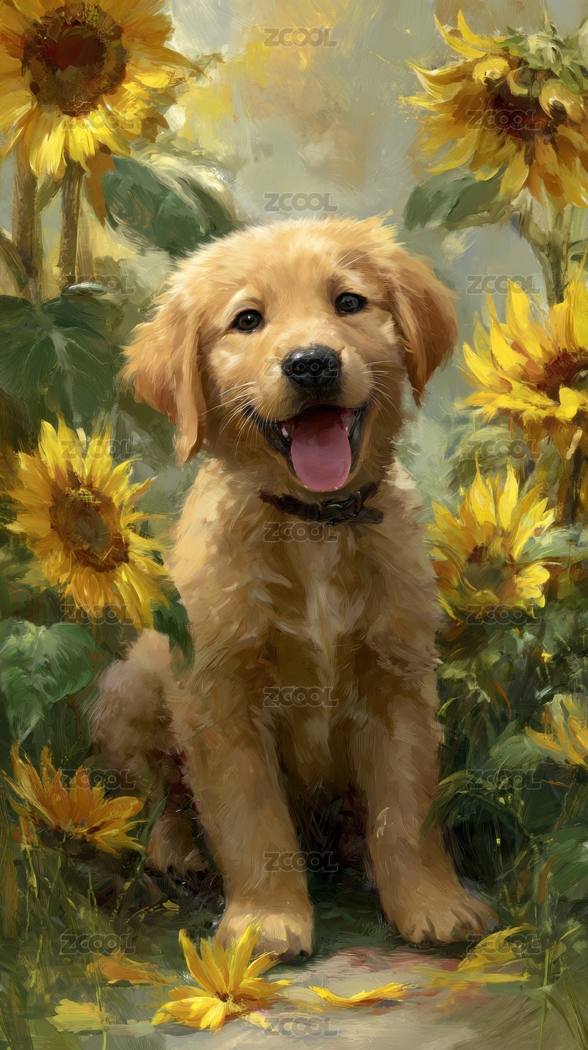 向日葵,奔向,镜头,金毛,奔跑,鱼眼
