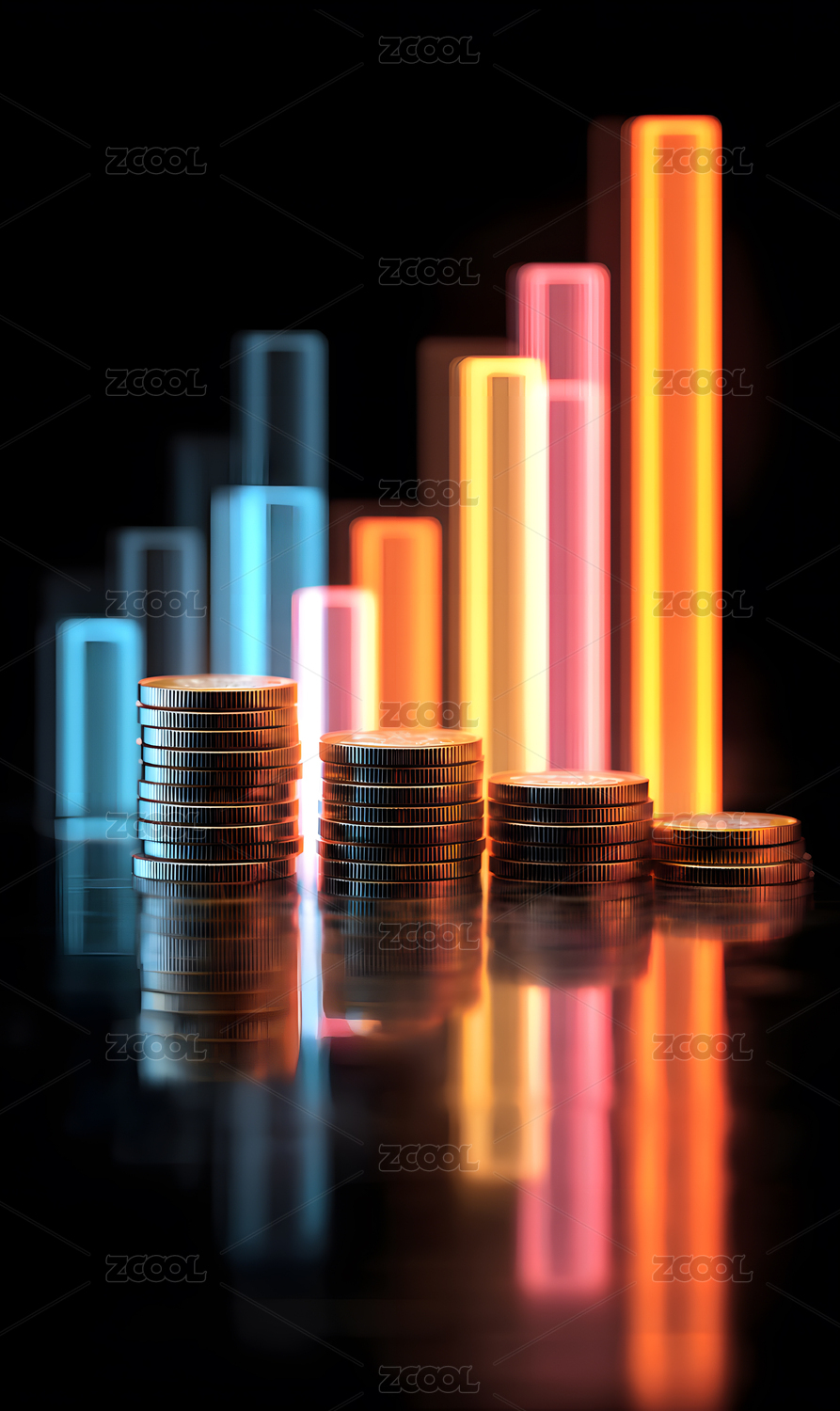 金币之上的柱状图呈现增长趋势