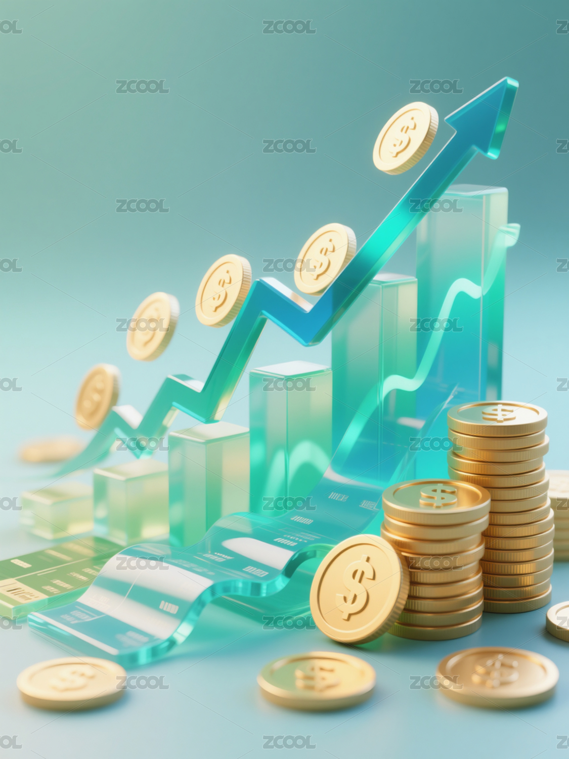 金币与柱状图的财富增长象征