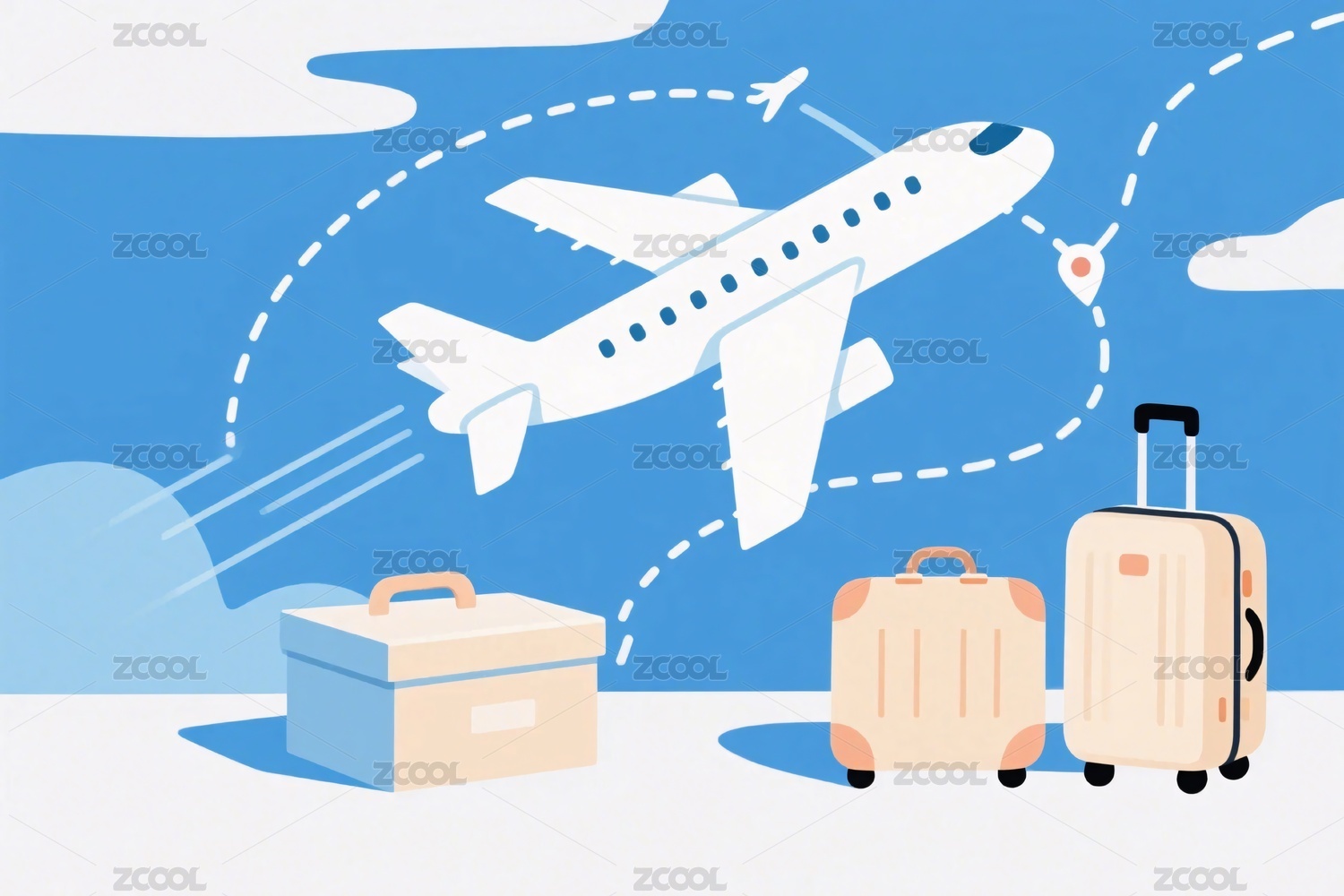 旅游出行概念,飞机、旅行箱等旅游概念图标