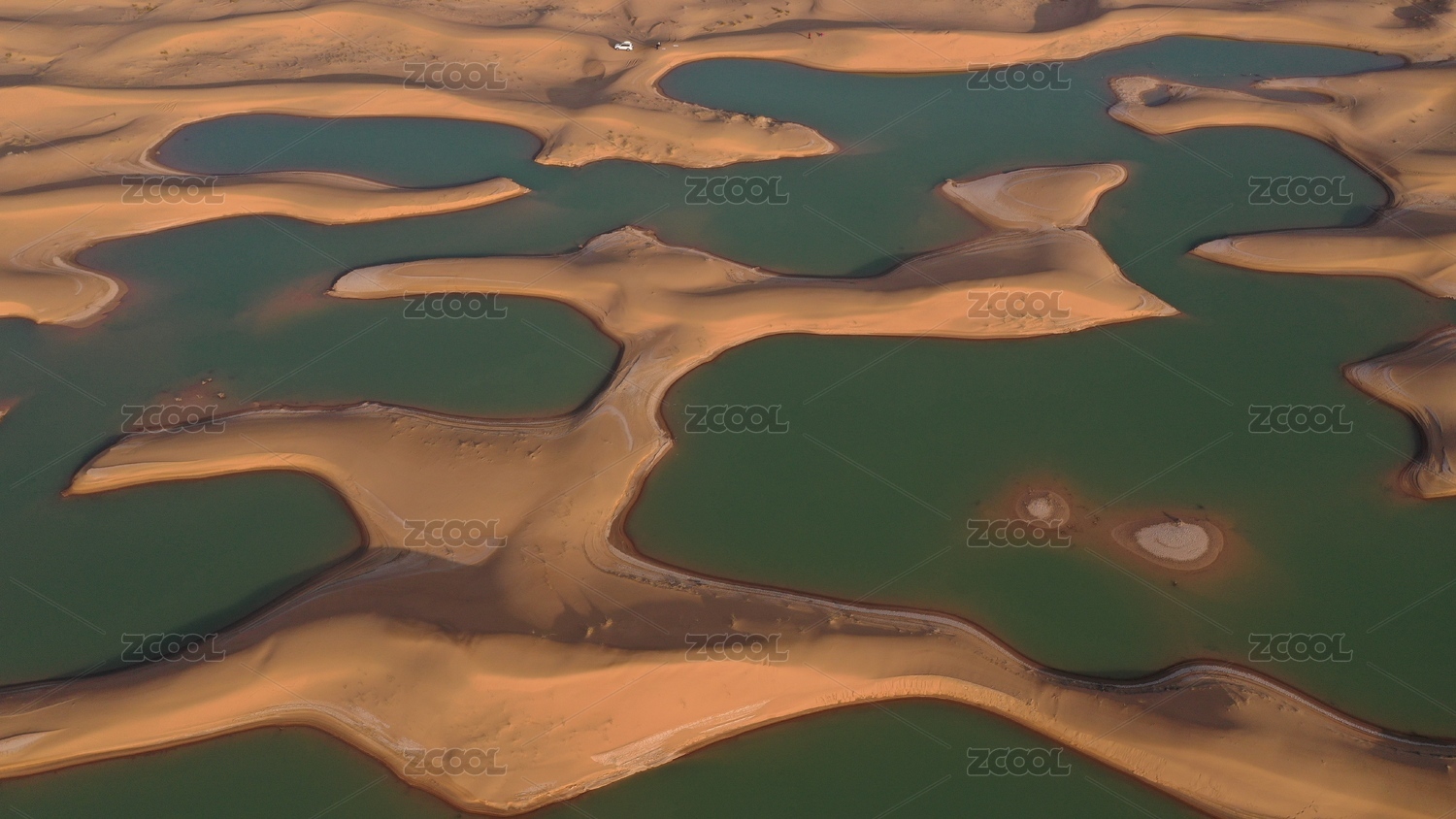 内蒙古阿拉善腾格里沙漠多彩的湖泊
