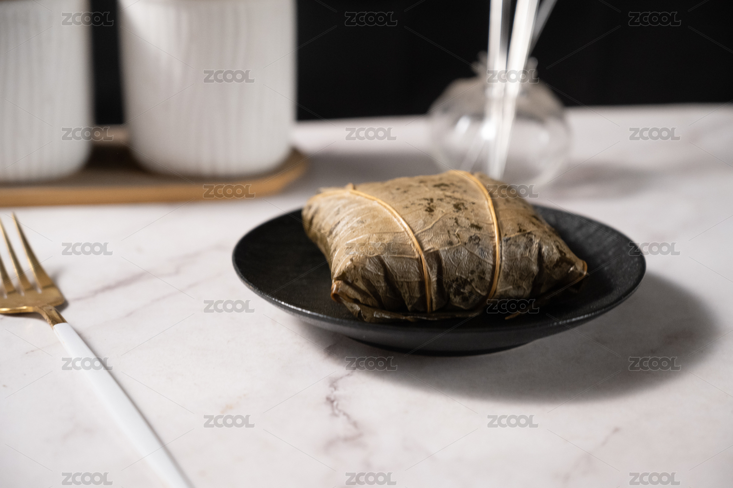 桌面上的盘子里的美味可口的荷叶糯米鸡