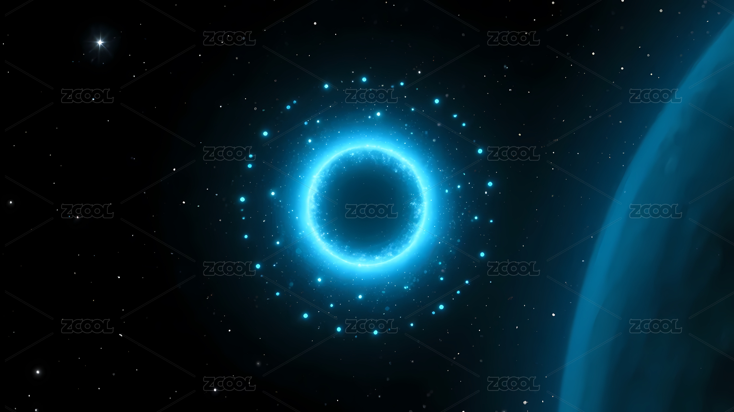 蓝色发光光环星空