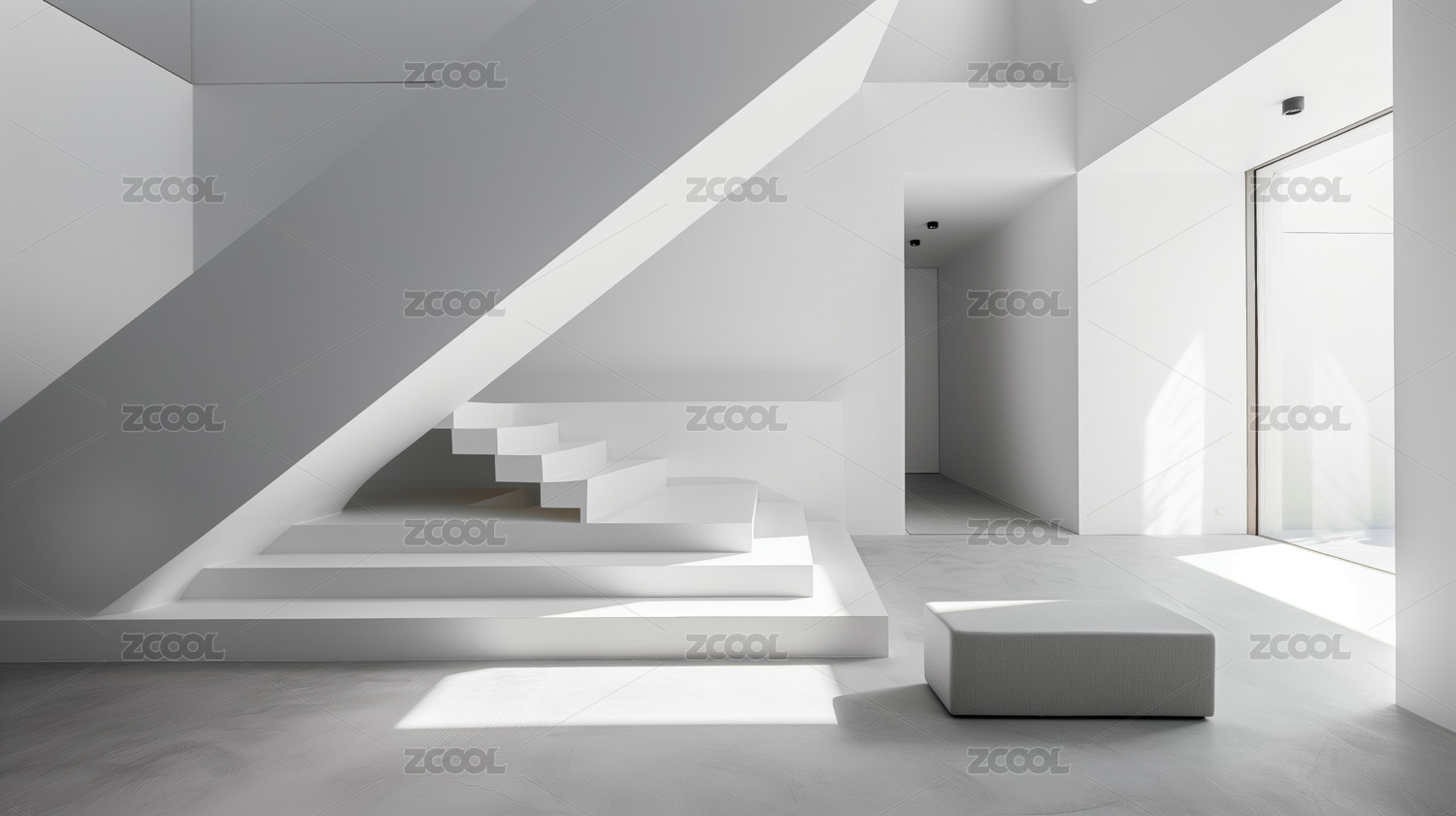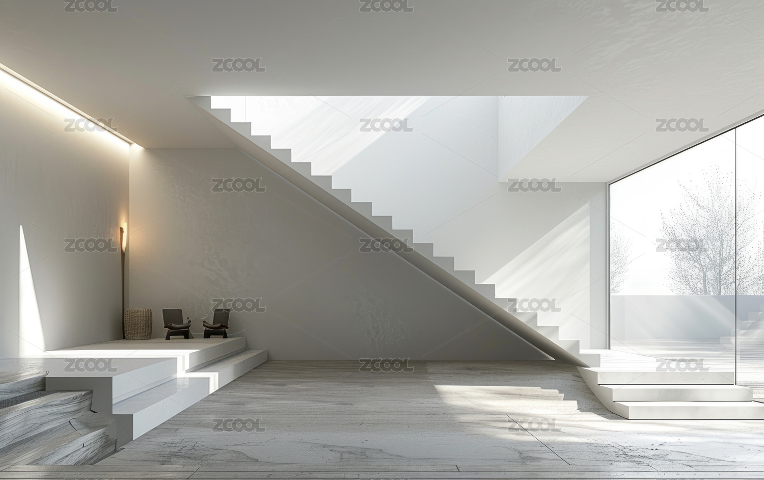 室内,建筑,现代,极简,白色,楼梯,书柜,背景,三维,场景