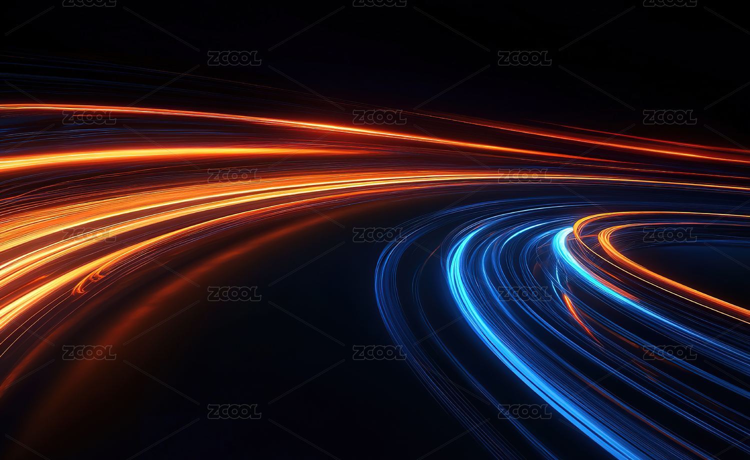 炫彩未来科技感3D蓝橙光流抽象风格背景