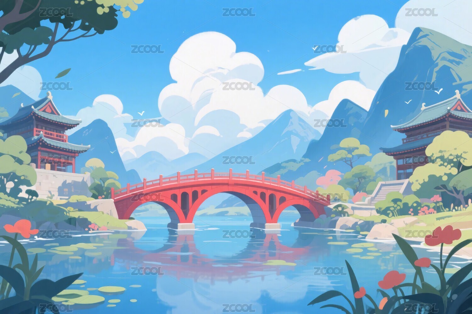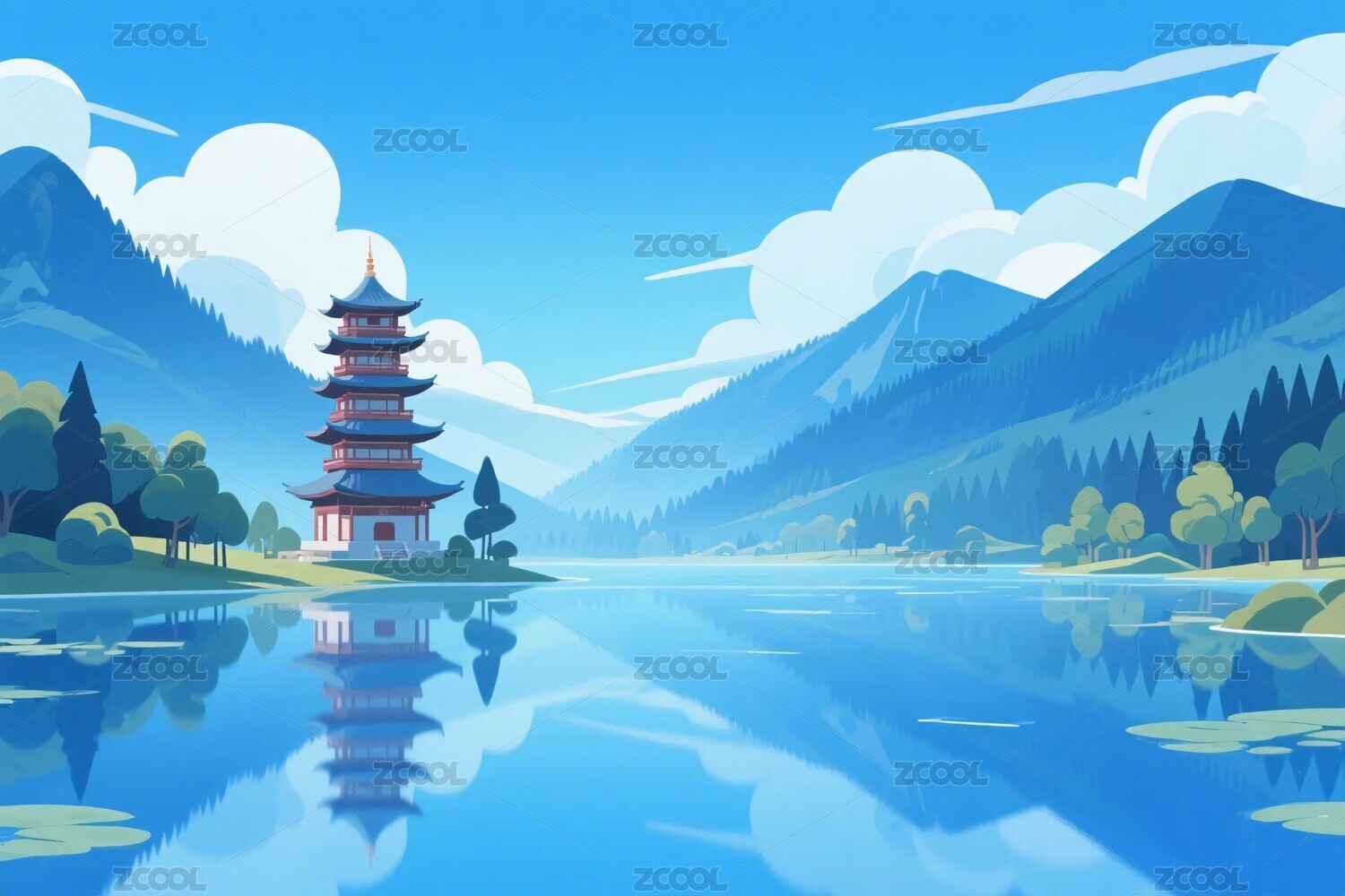 房屋,中国风,插画,水墨画,建筑,水乡,旅游,艺术,倒影,风景
