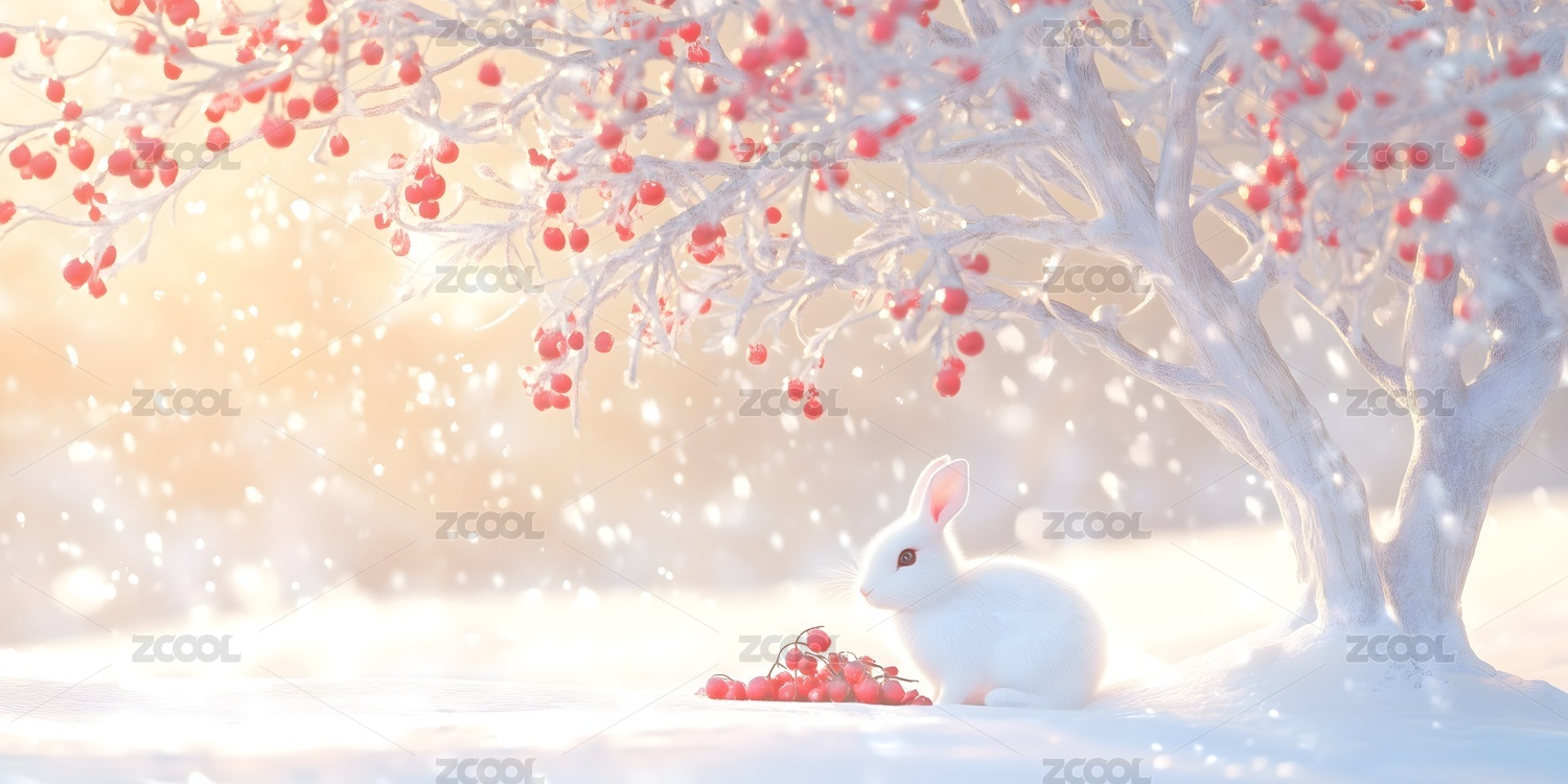 雪兔与冬日红果