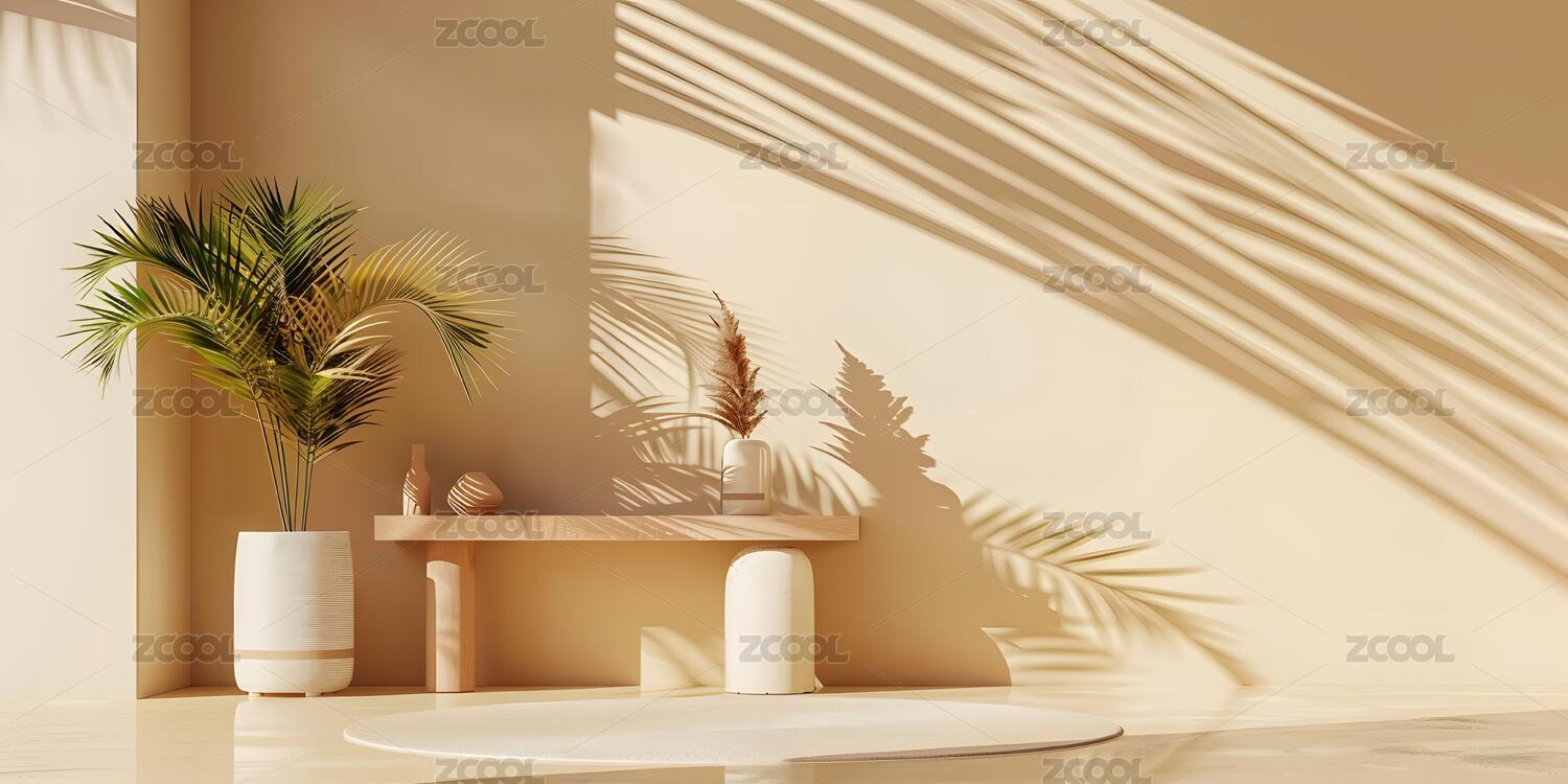 简约风格的展示台和植物
