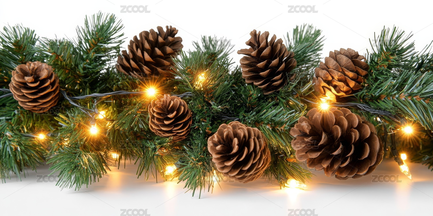 松果,灯串,装饰,棕色,光带,温暖,自然,光线,背景,黑色