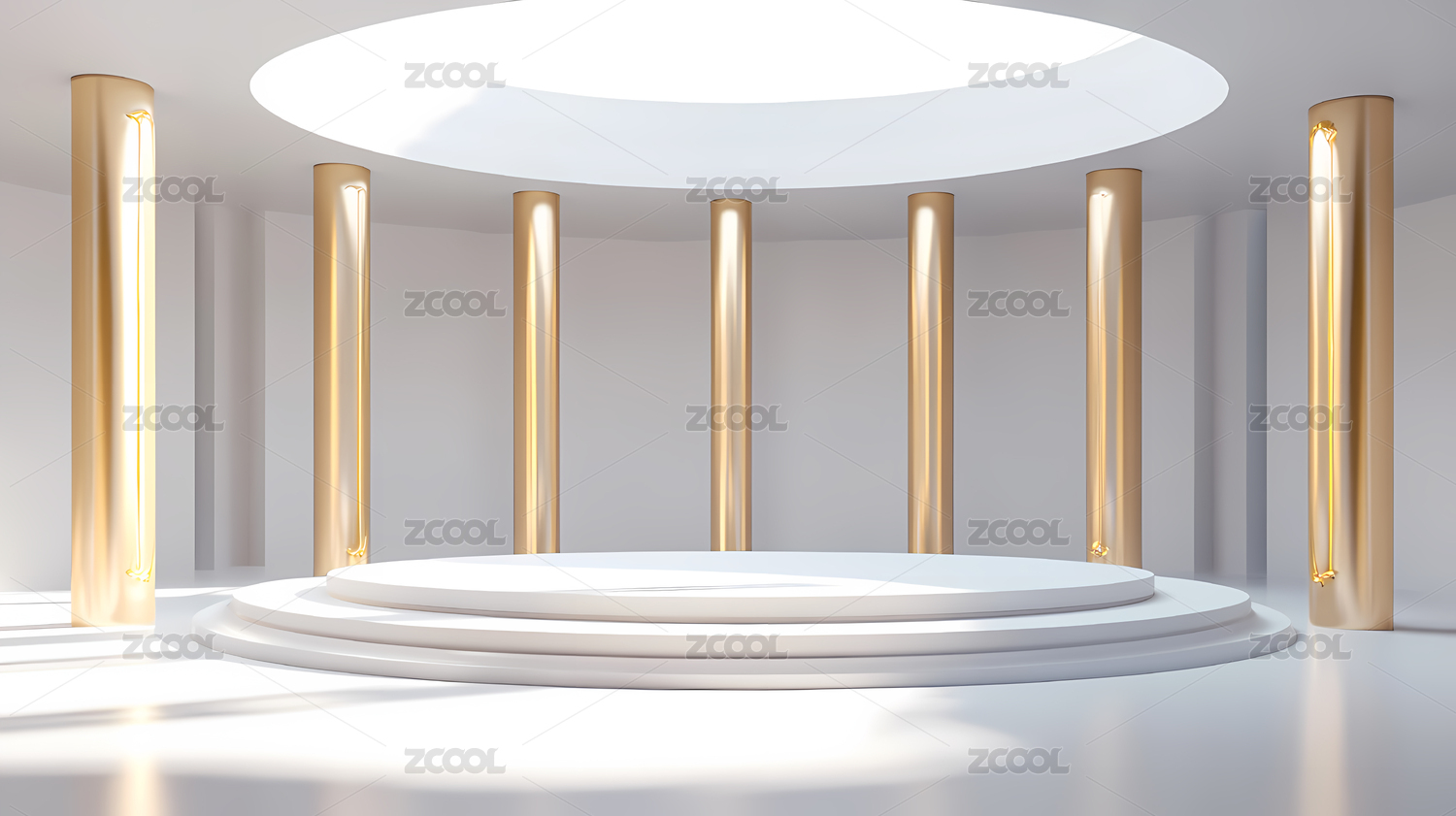 金色,平台,圆形,黄色,灯光,照亮,深色,背景,醒目,突出