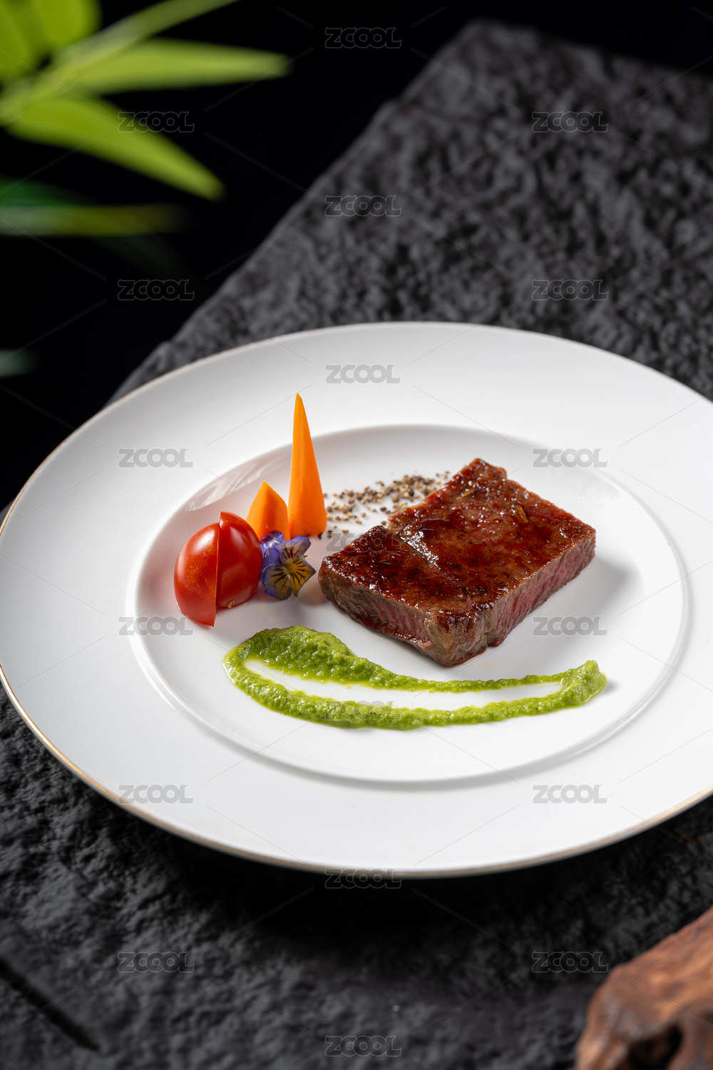 香煎牛排配青酱与新鲜蔬菜