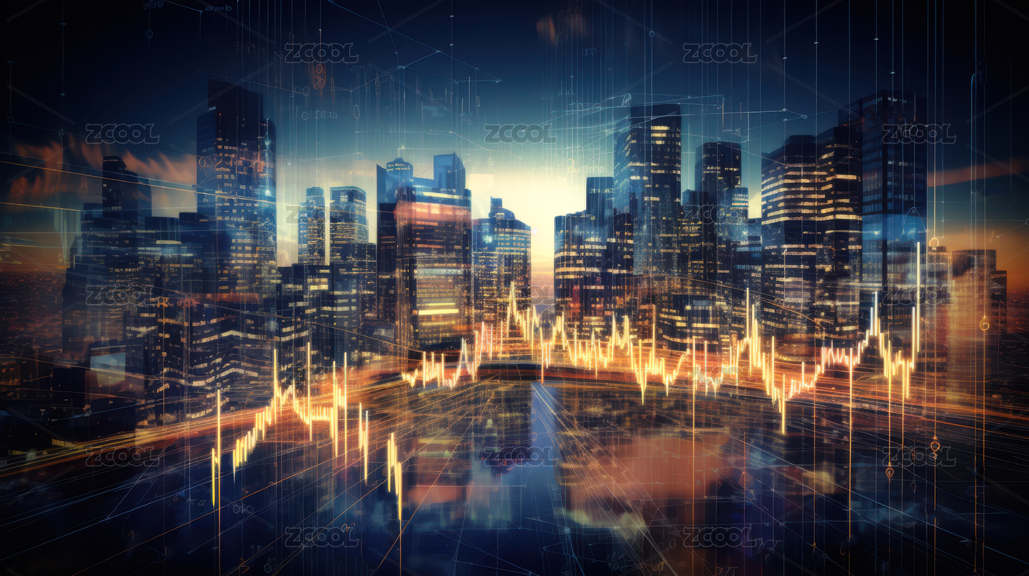 灯光,都市,建筑,城市,夜景,夜晚,金融,数据,叠加,图表