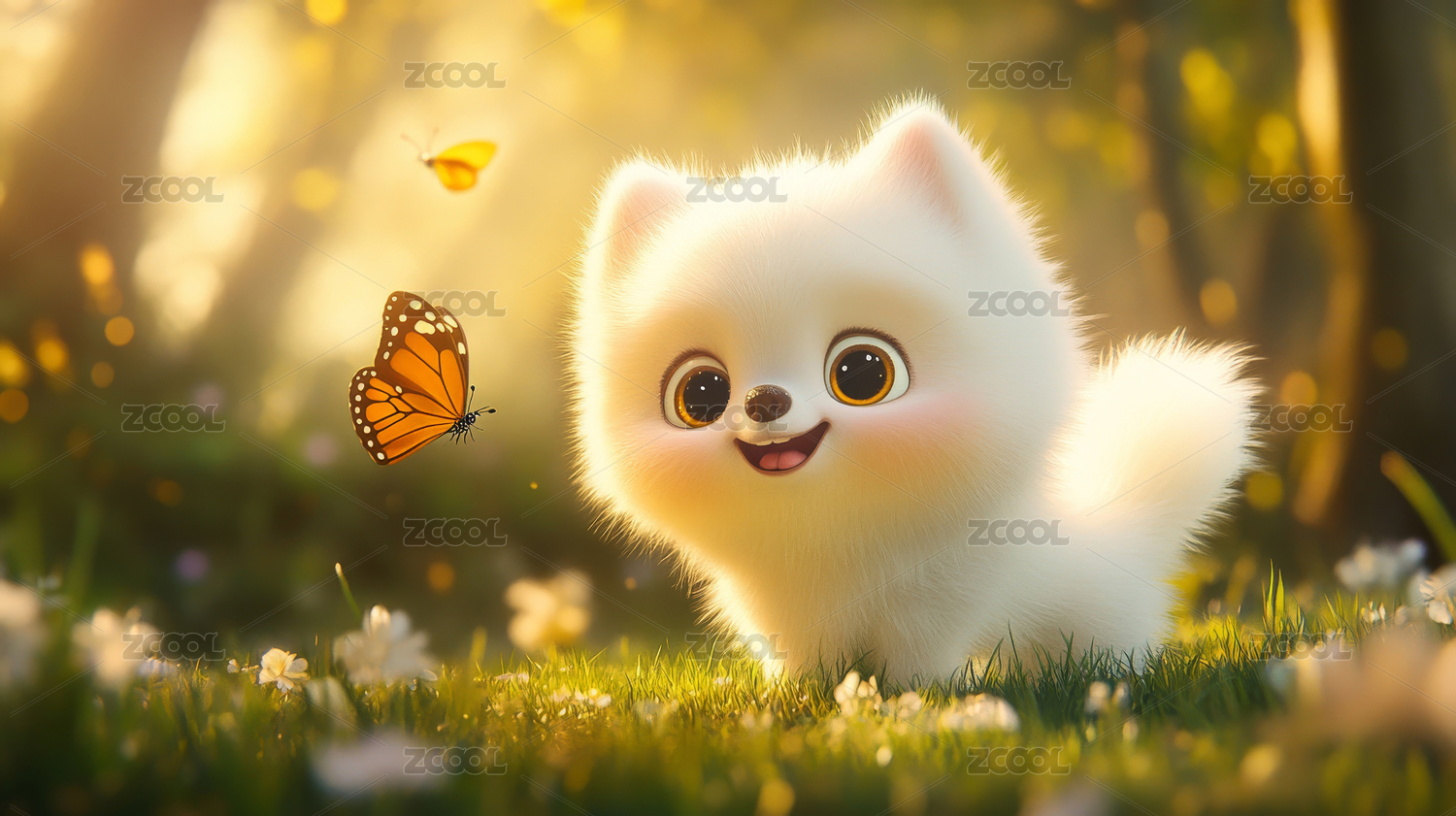 阳光下毛茸茸的小白狗