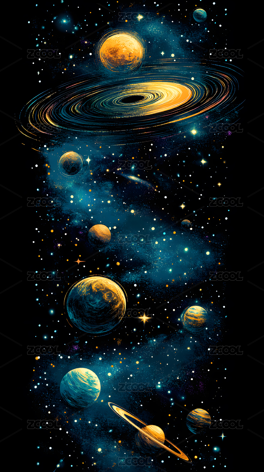 多彩的宇宙各种天体抽象插画