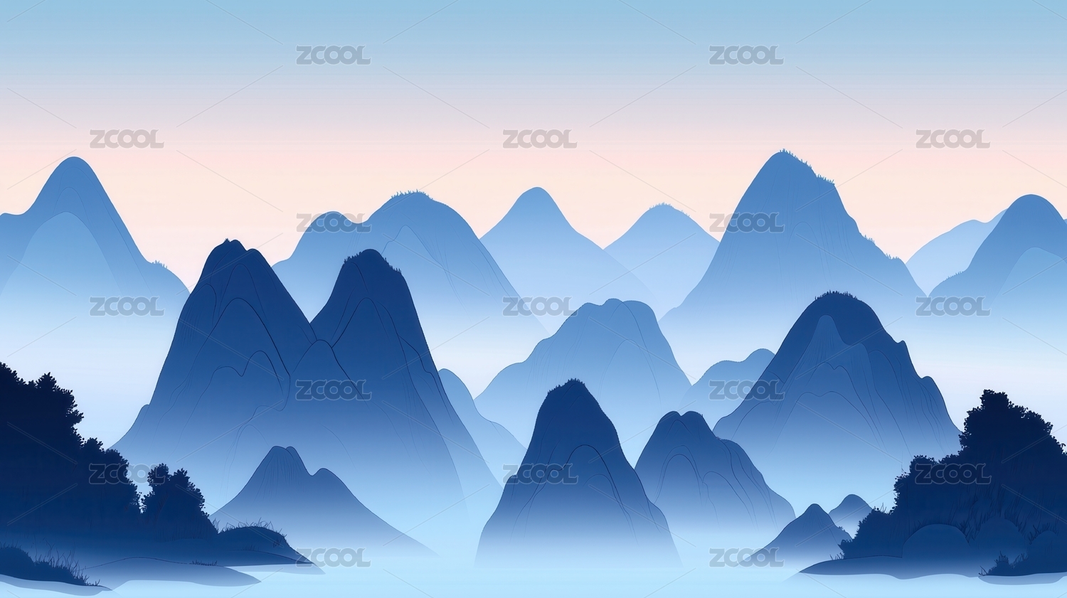 风景,自然,景色,宁静,梦幻,插画,清新,意境,蓝色,壁纸
