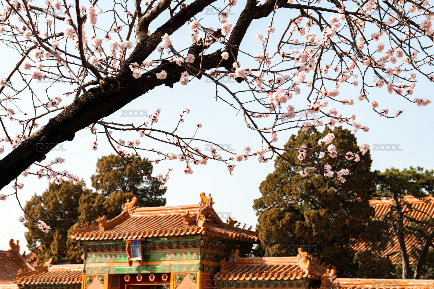 春天北京故宫博物院里盛开的杏花