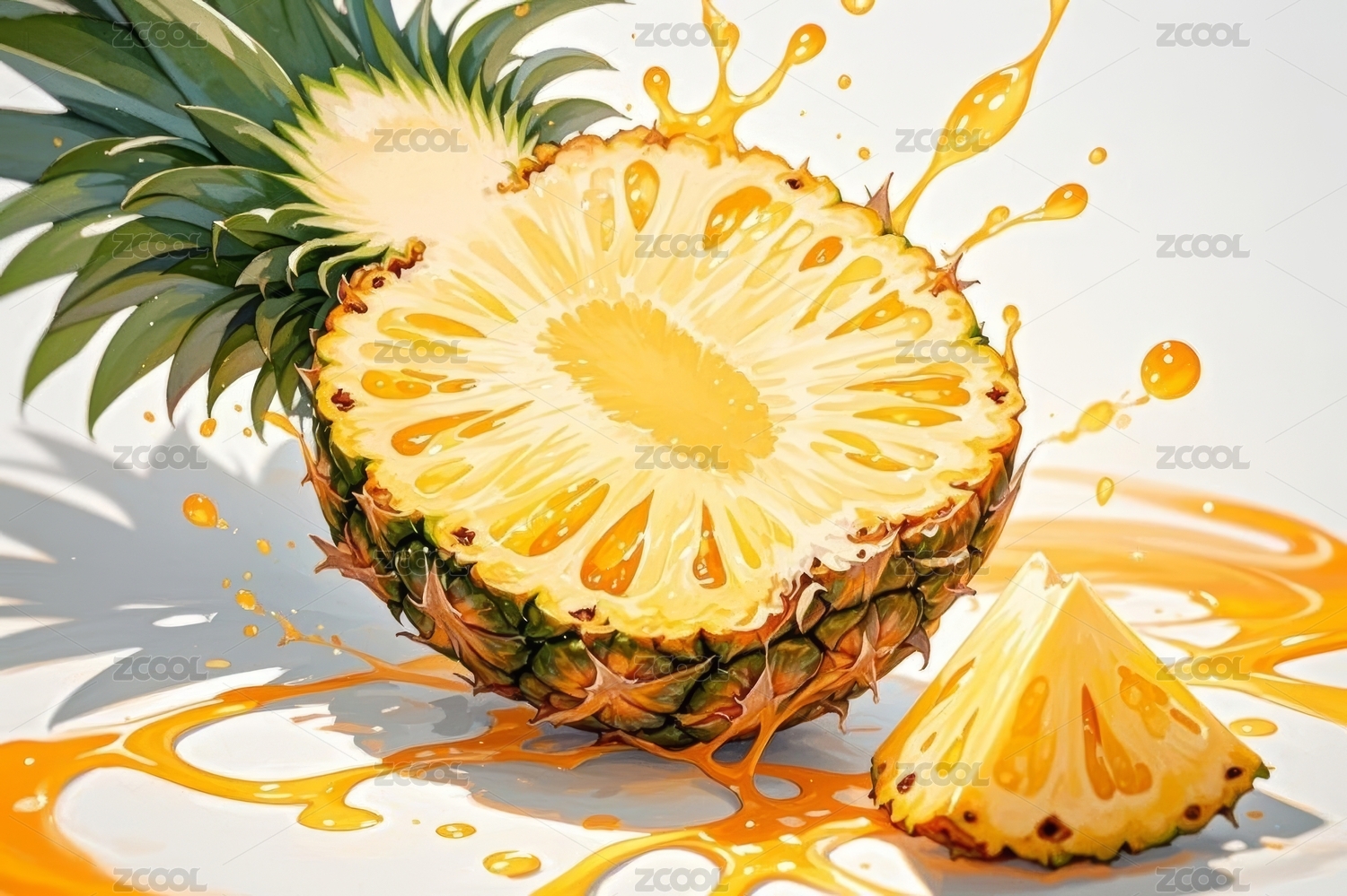 水果,果汁,清新,水滴,健康,饮料,切片,新鲜,多汁,叶子