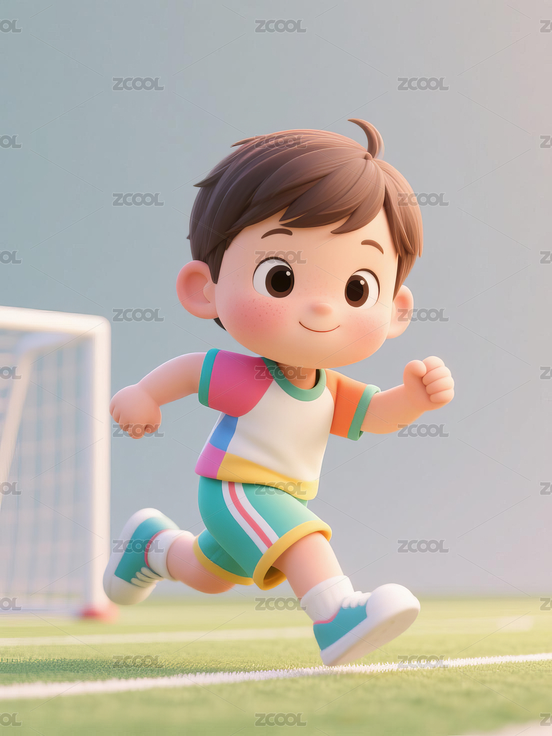 3D卡通跑步的男孩