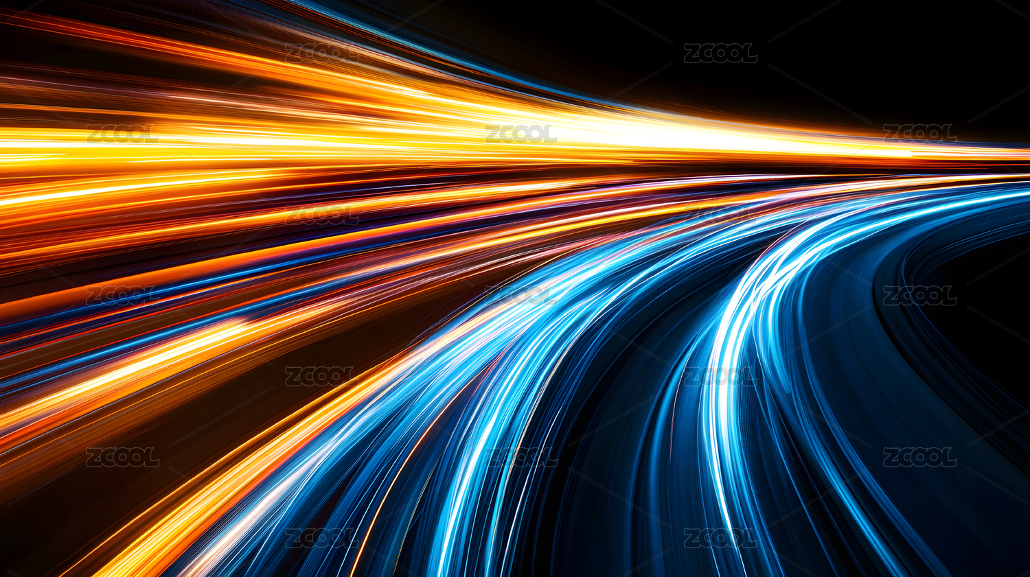 抽象,科技,未来,蓝色,线条,流动,轨迹,橙色,动态,速度