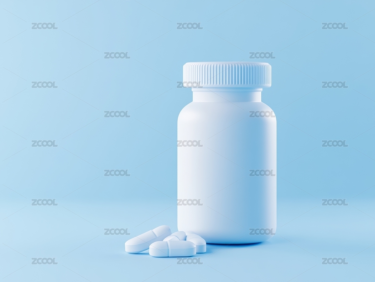 卡通淡蓝色立体医学药品药瓶胶囊模型插画