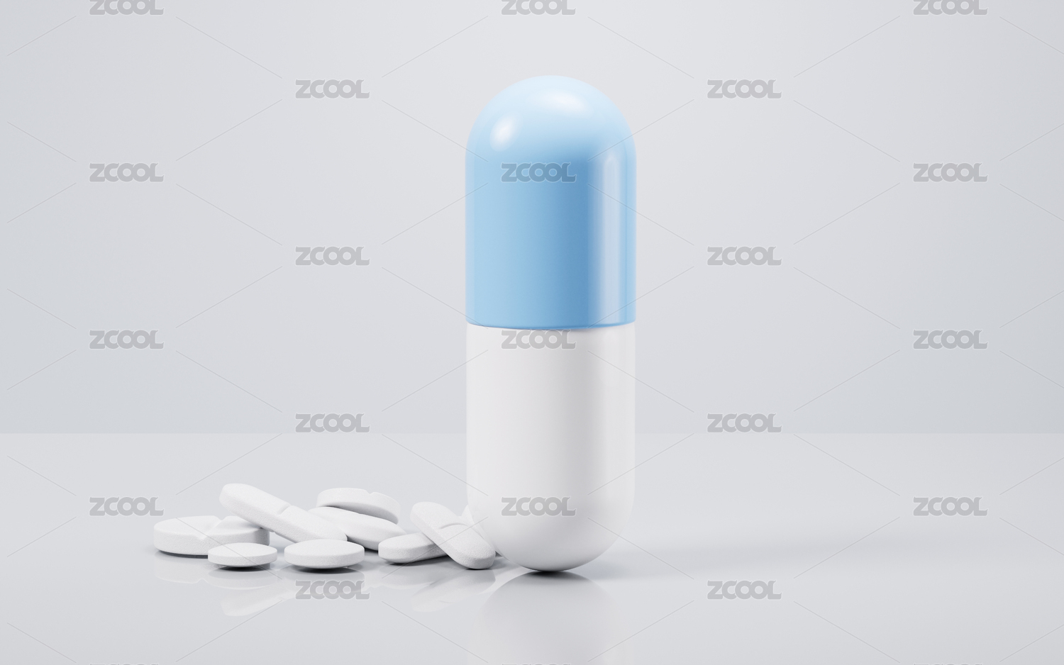 胶囊药片药品药瓶漂浮展示,三维简约背景