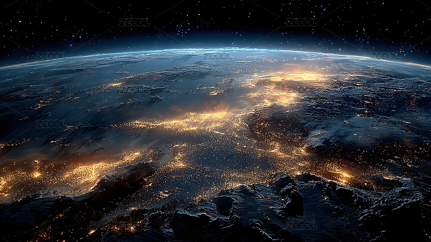 太空俯视地球美丽景象宇宙蓝色科技感背景