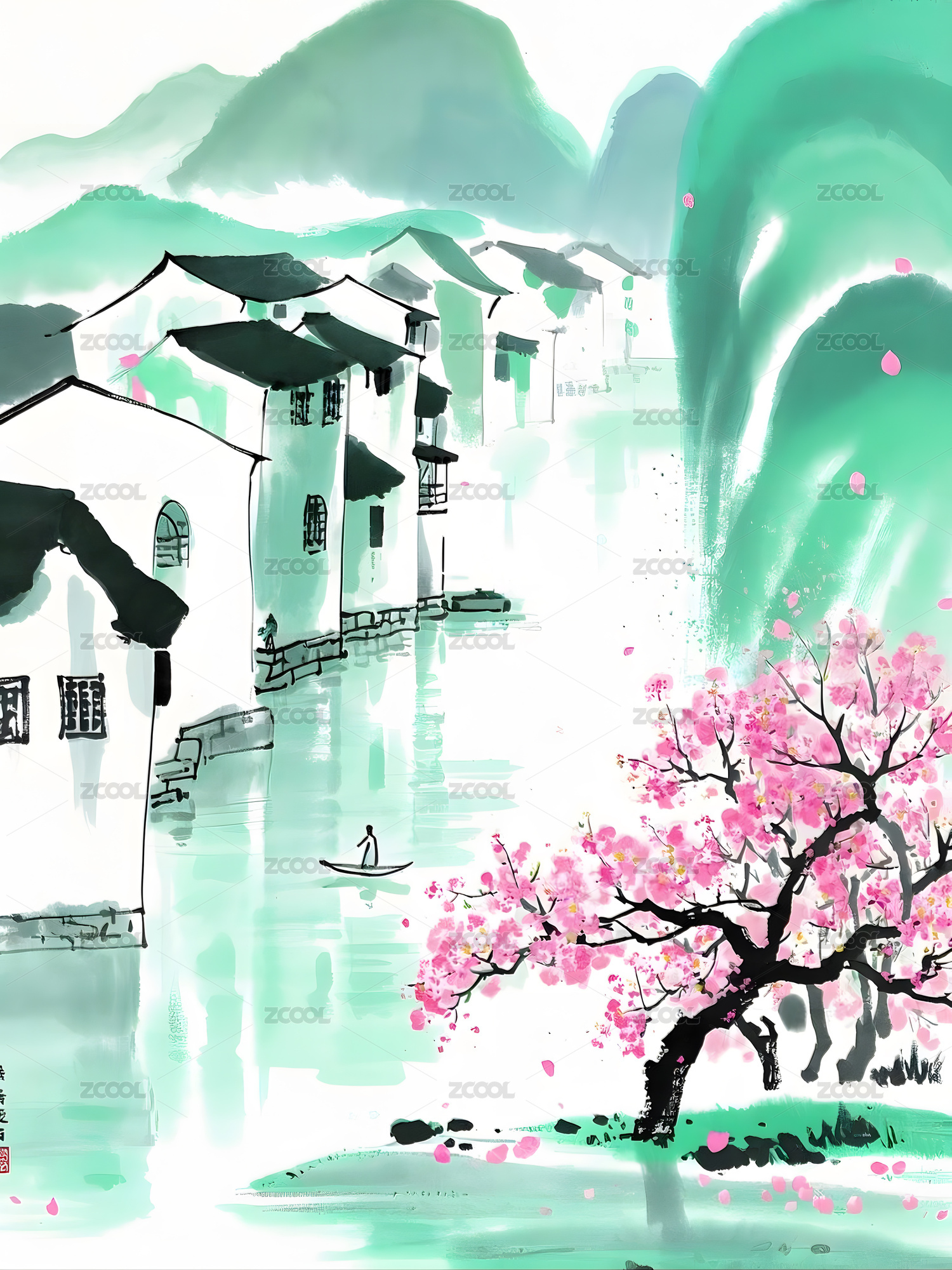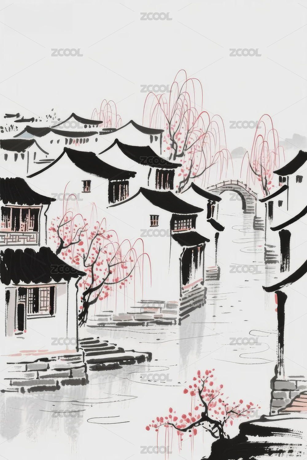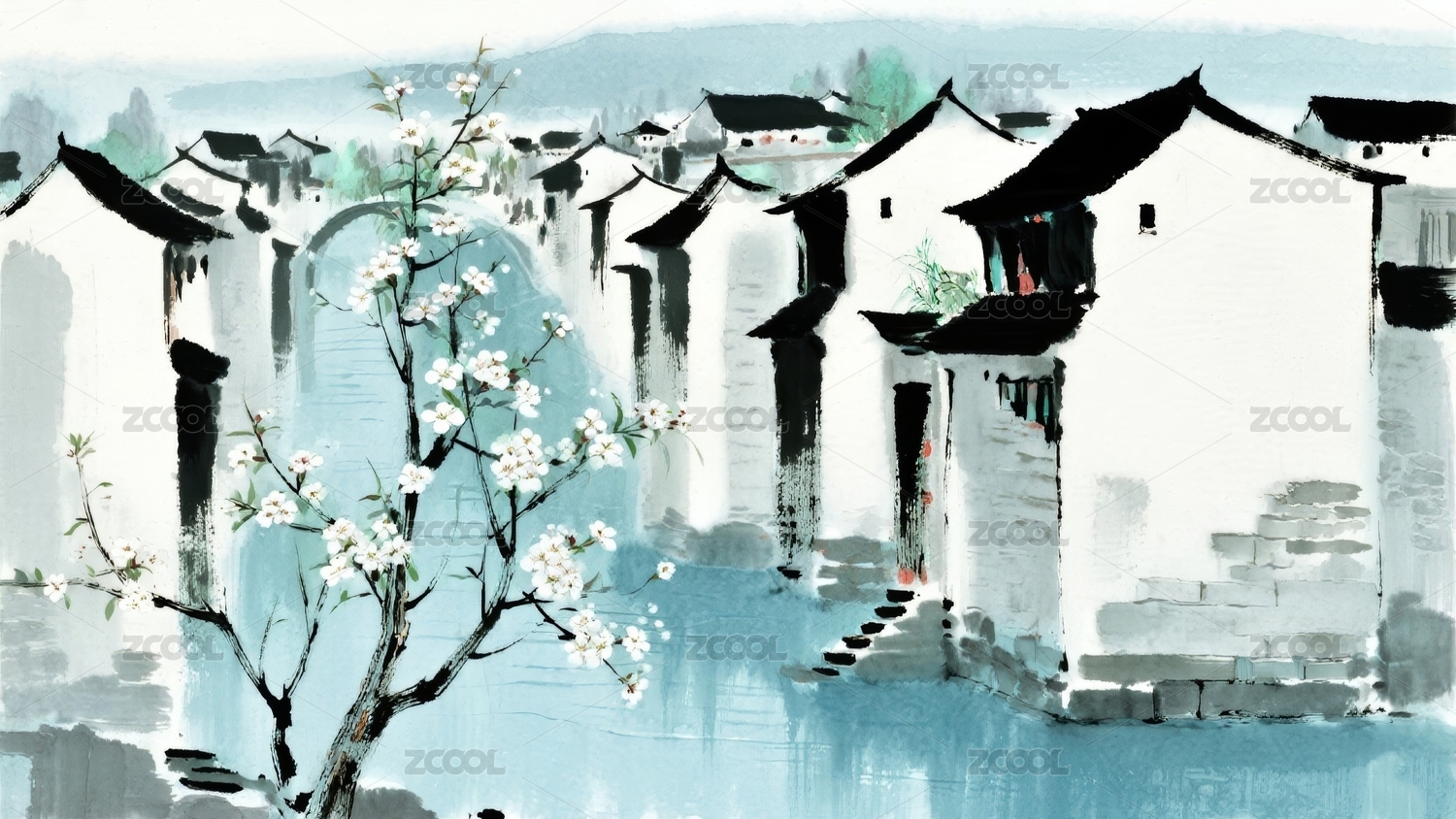 民居,建筑,江南,写意,春天,风光,风景,极简,意境,立春