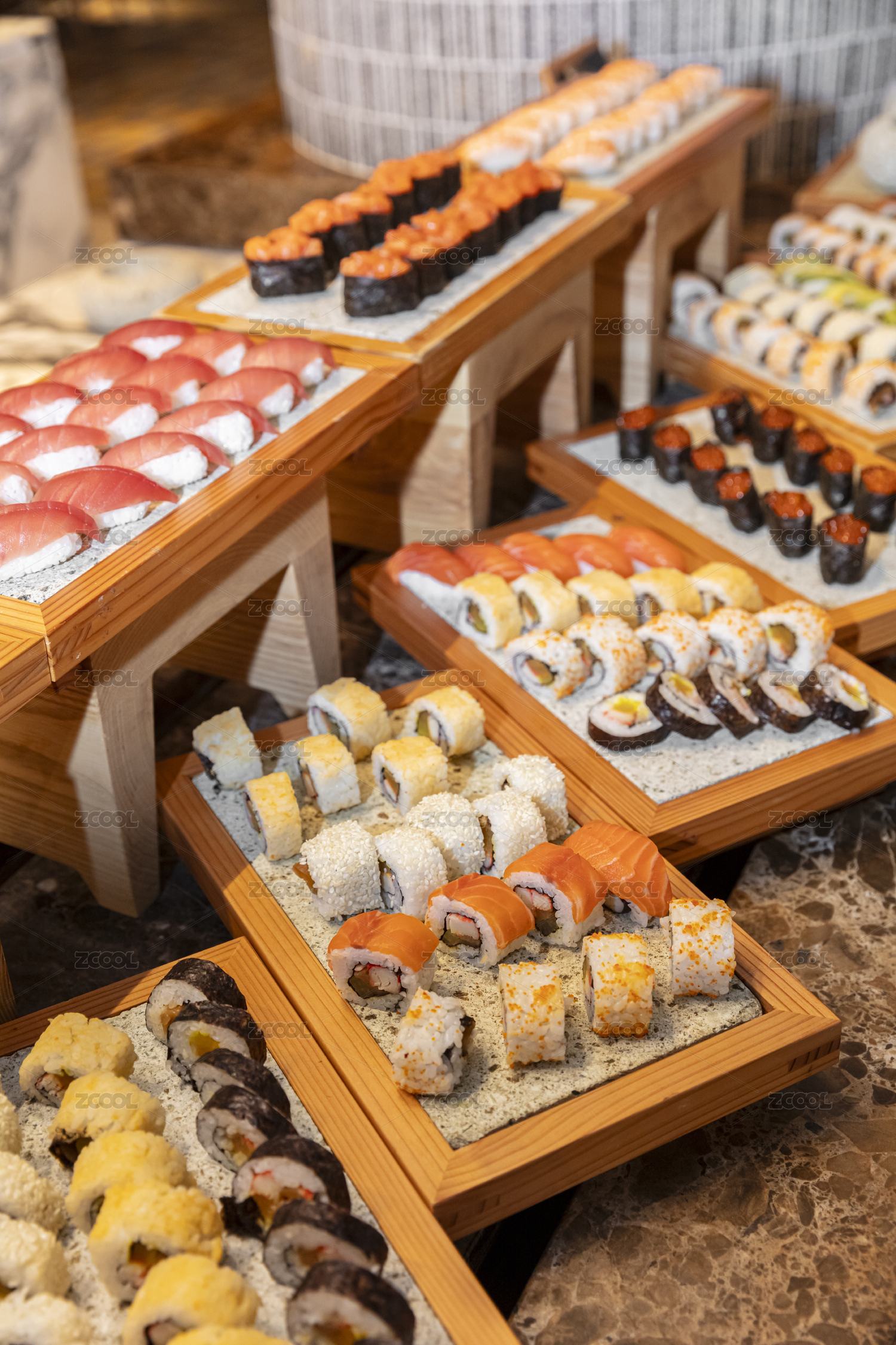 餐厅寿司自助餐台展示