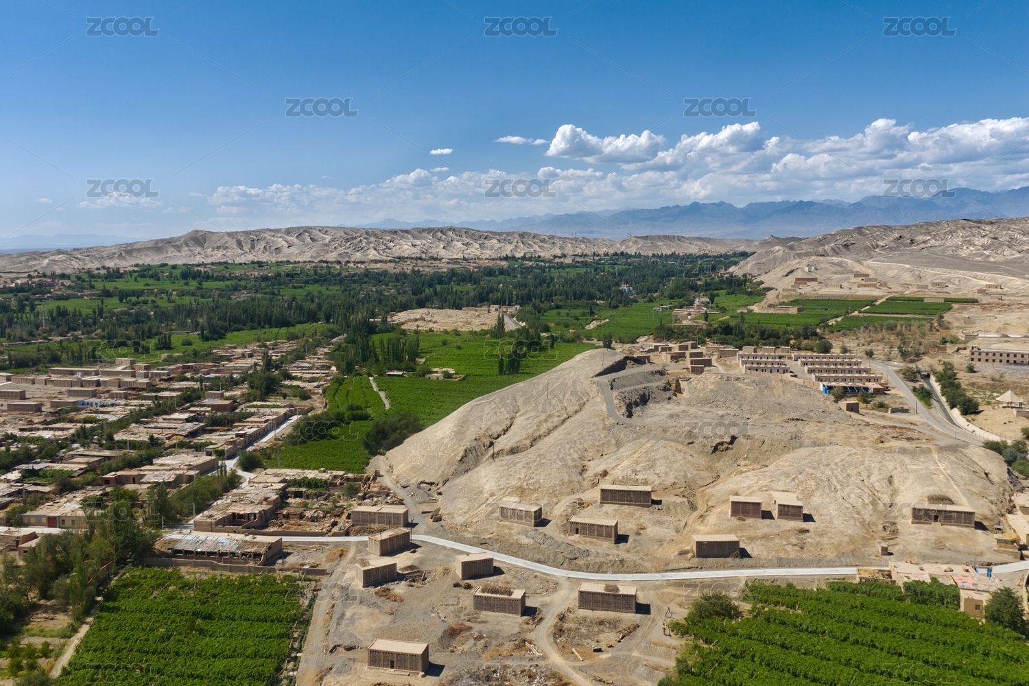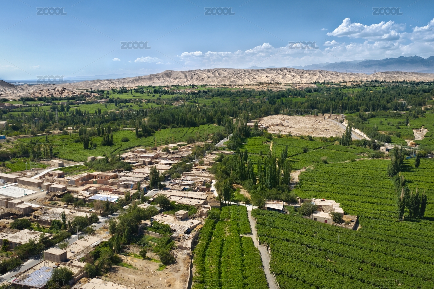 乡村,农村,农田,吐鲁番,山脉,山谷,峡谷,干旱,新疆,村庄