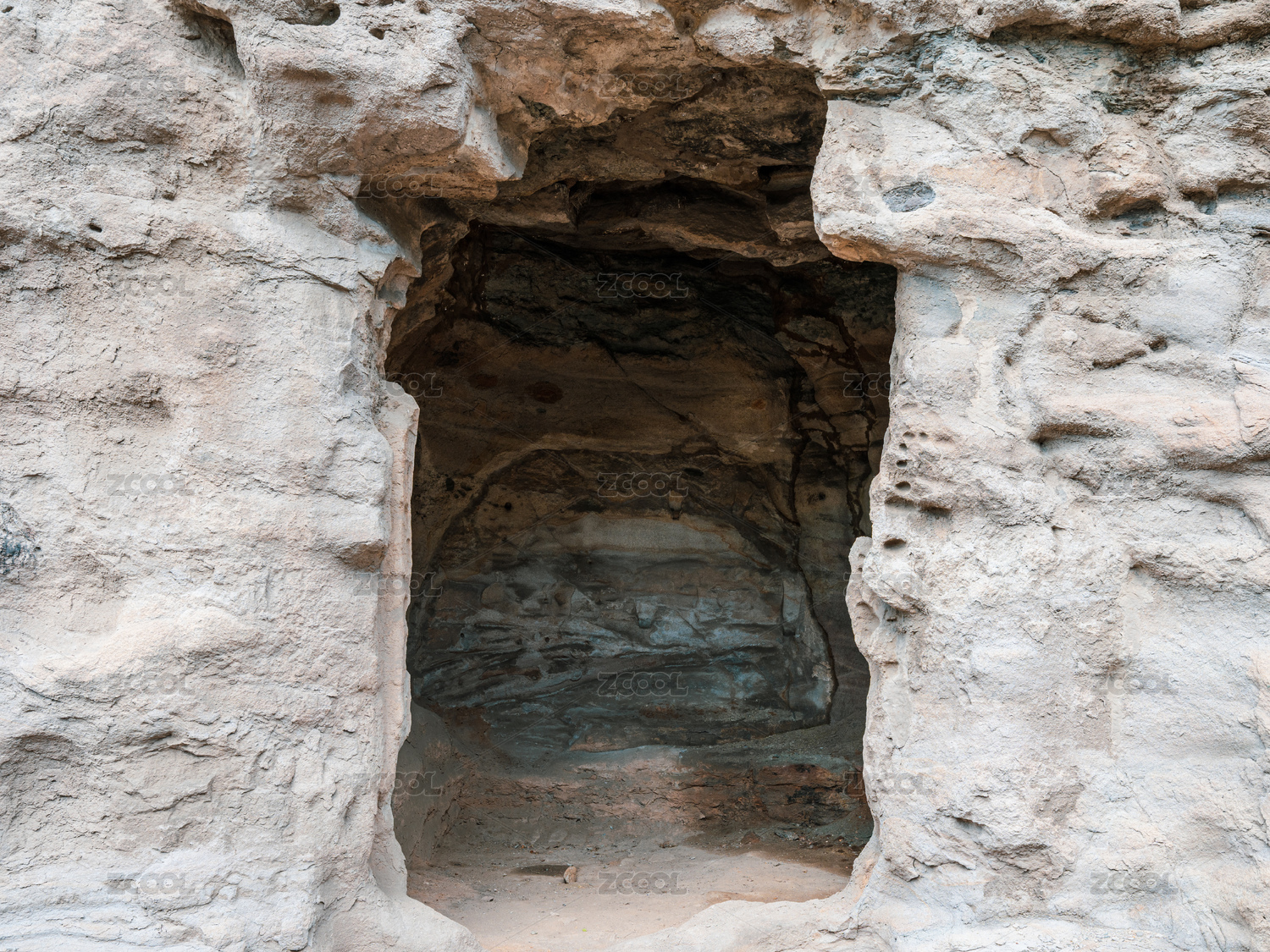 北京延庆古崖居风景区岩石上开凿的内部居室