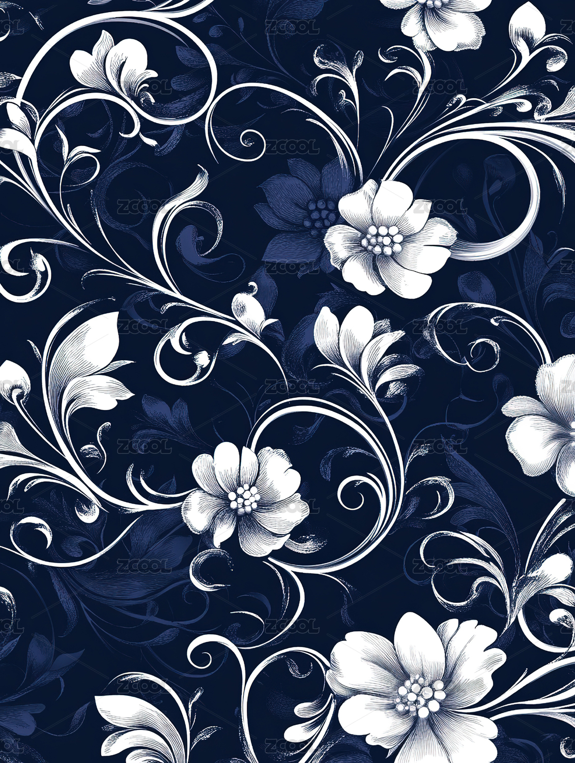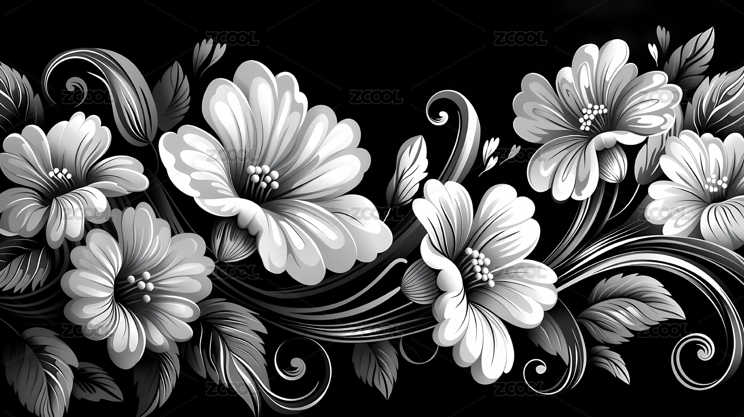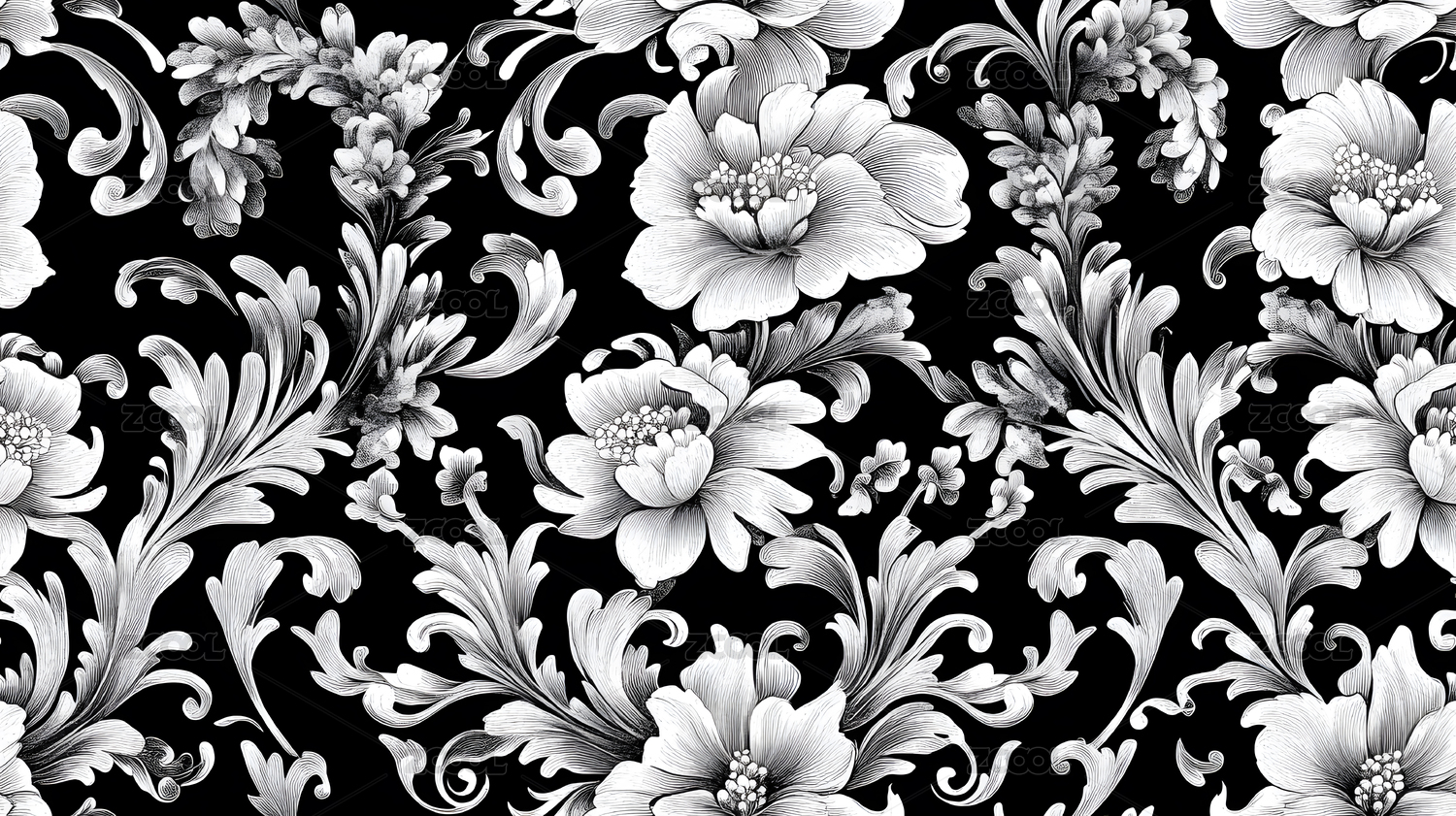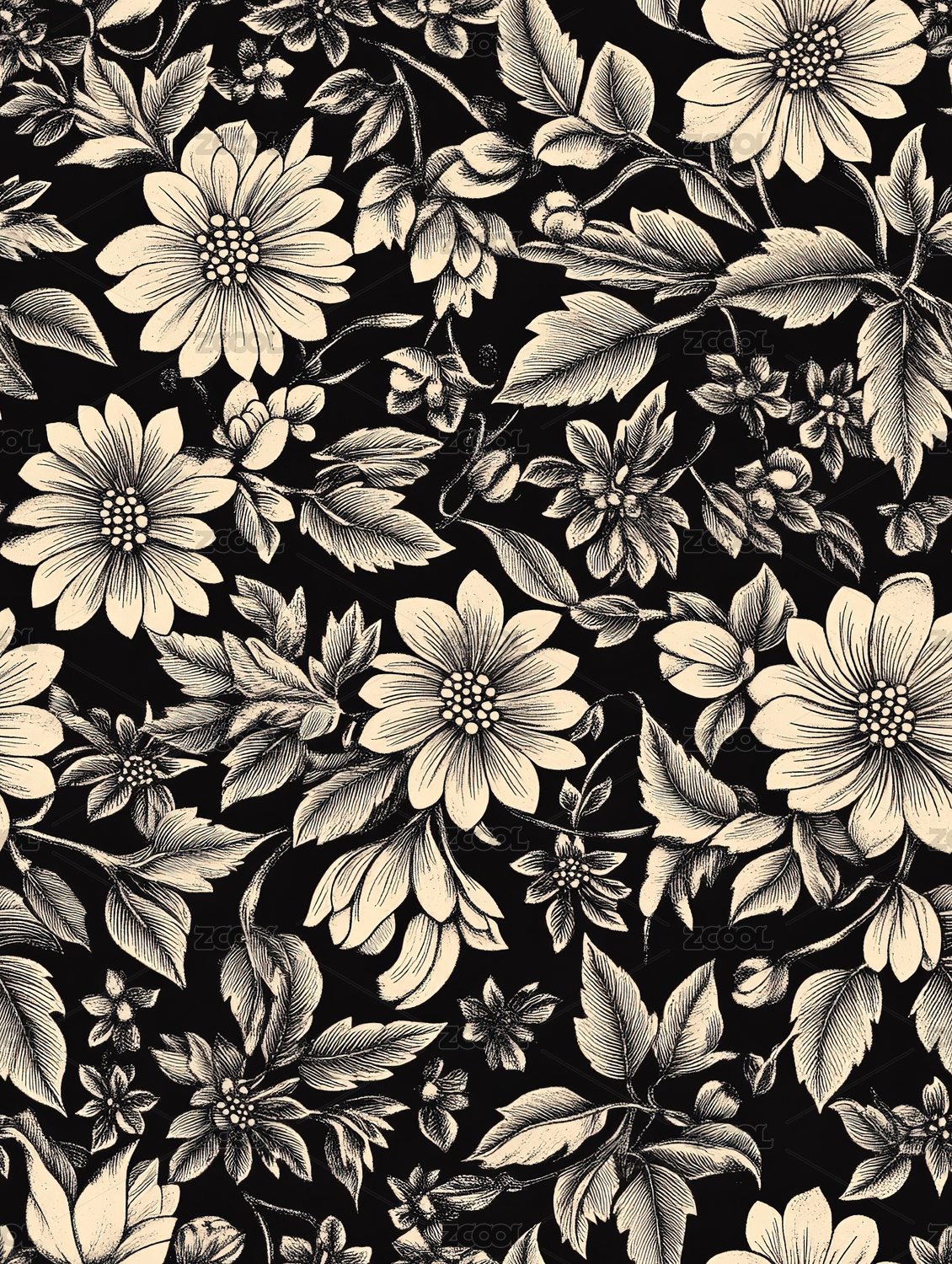 黑白素描印花稿图案背景