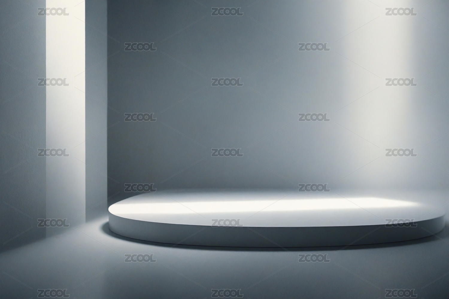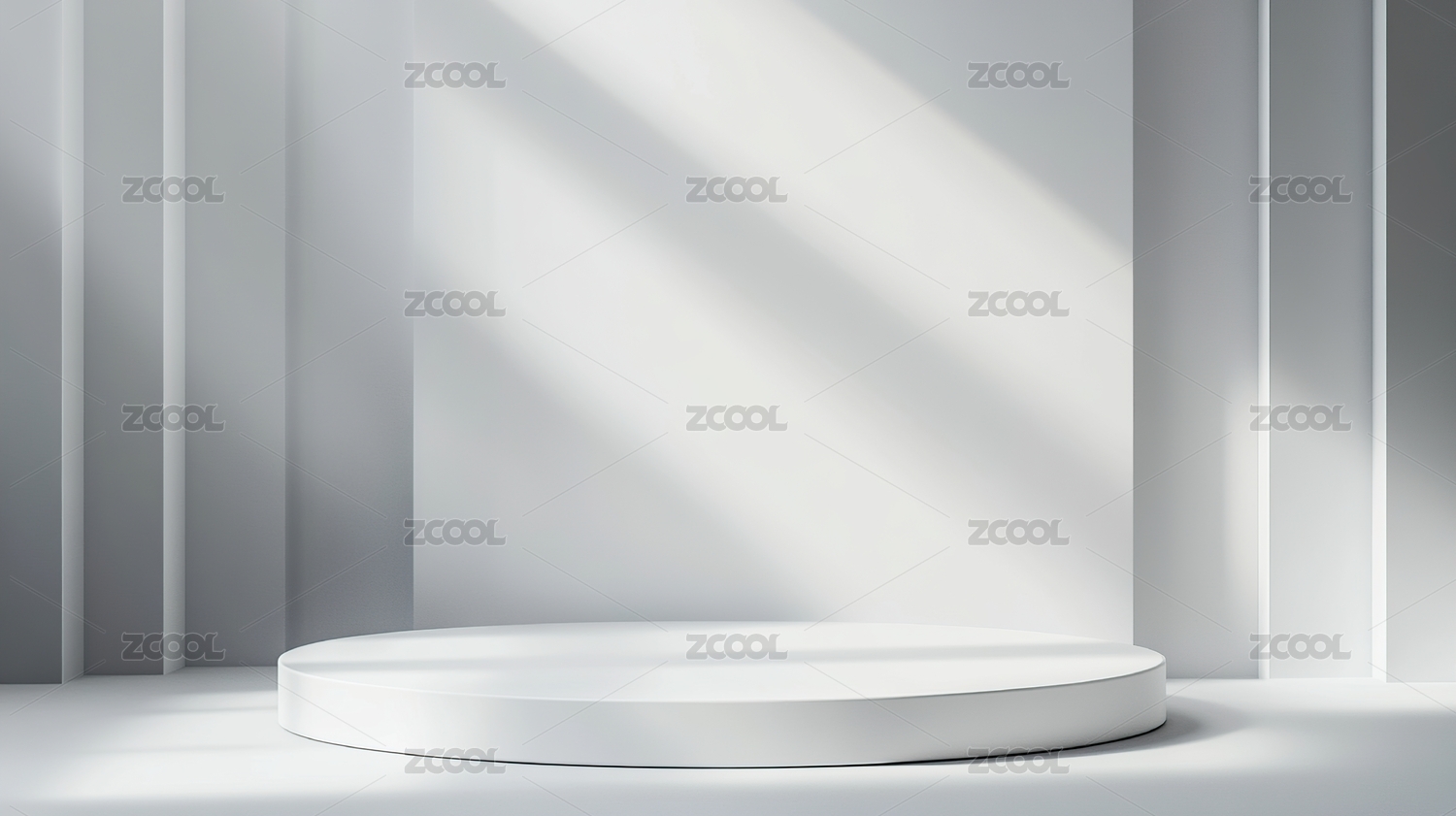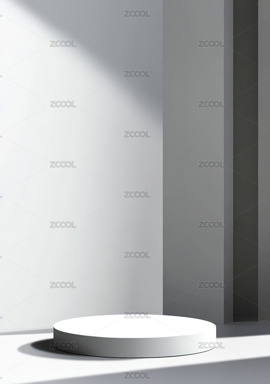 简约白色圆柱体置于光影交错的角落