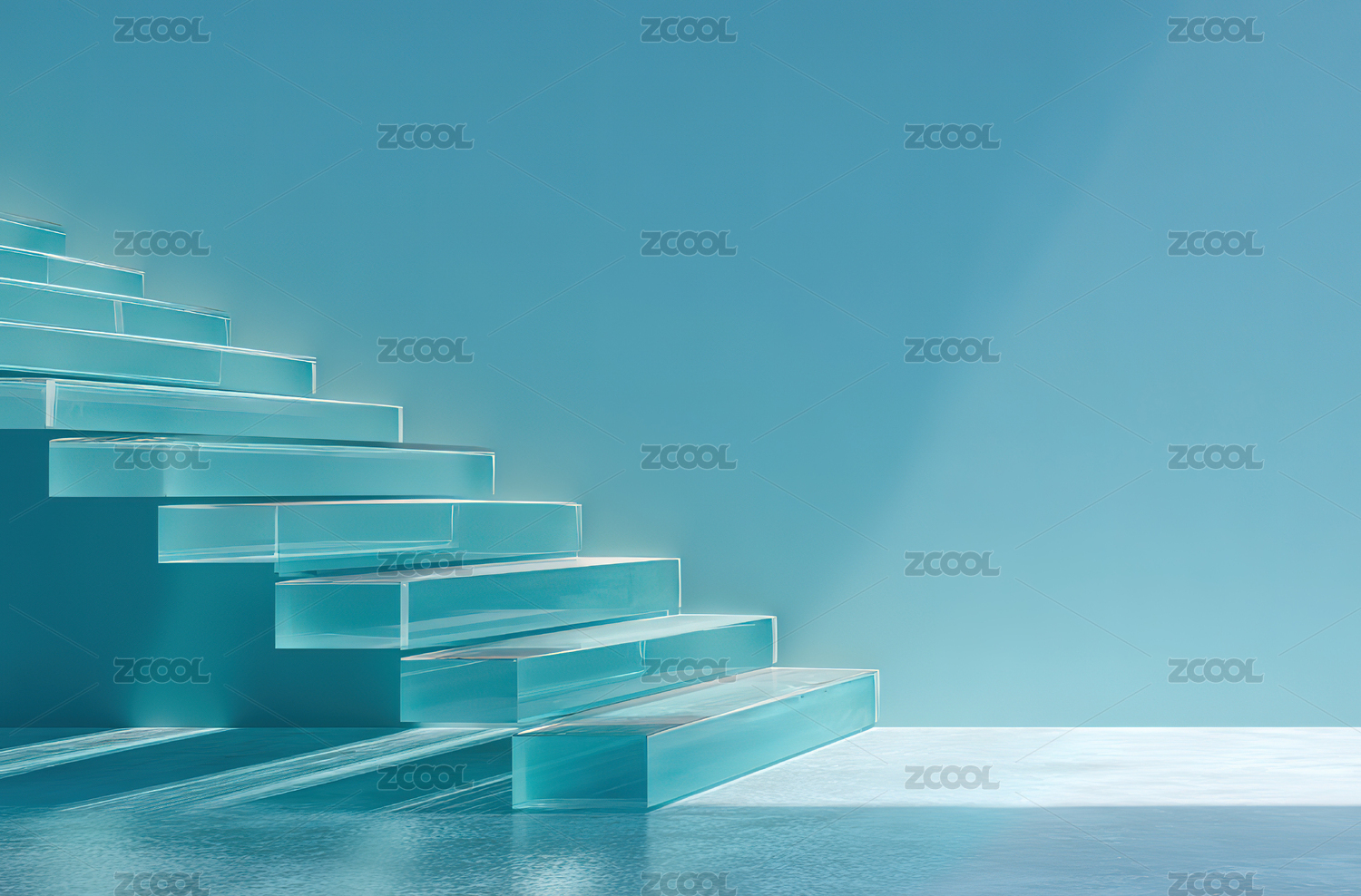 透明阶梯通向蓝色空间
