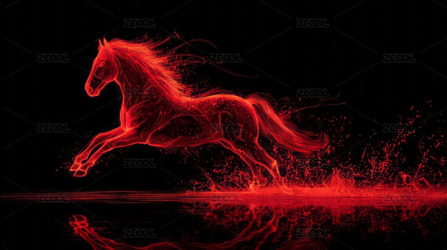 中国风金色汗血宝马奔跑的红色喜庆背景