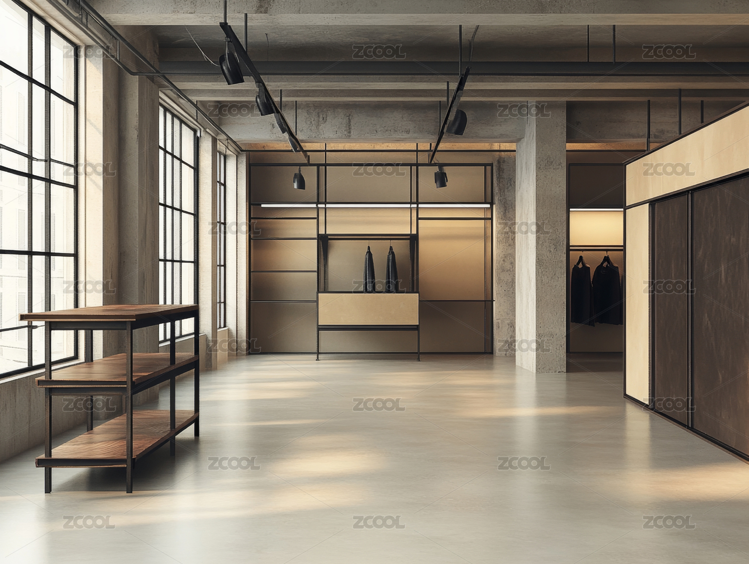 衣帽间,现代,工业,风格,服装,挂架,灯光,墙壁,地板,玻璃门