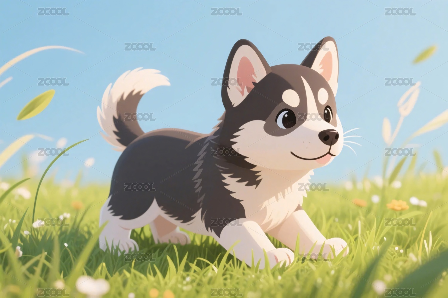 卡通,狗狗,微笑,雪地,可爱,宠物,坐姿,冬季