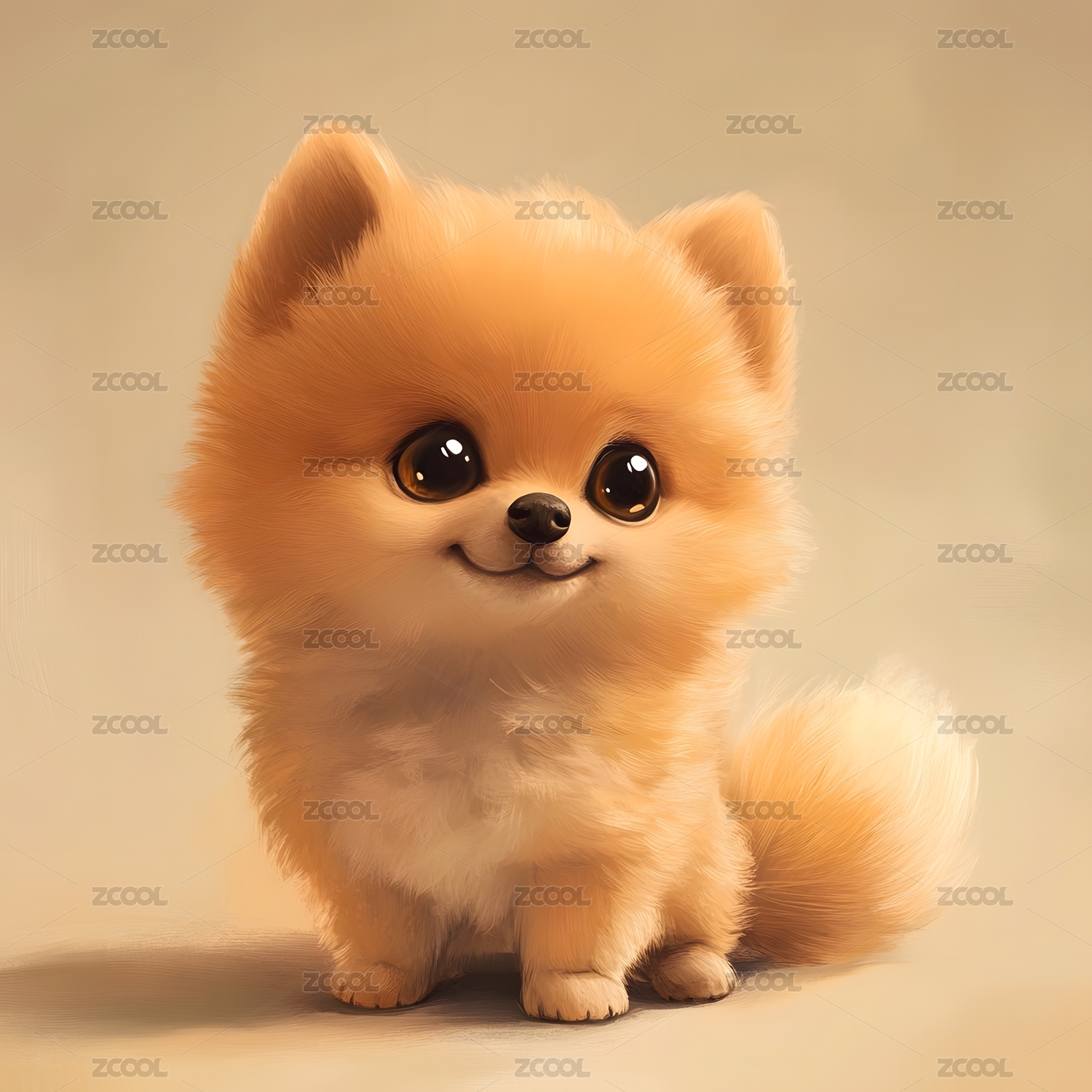 卡通,小狗,微笑,毛茸茸,橙色,宠物,可爱,动物