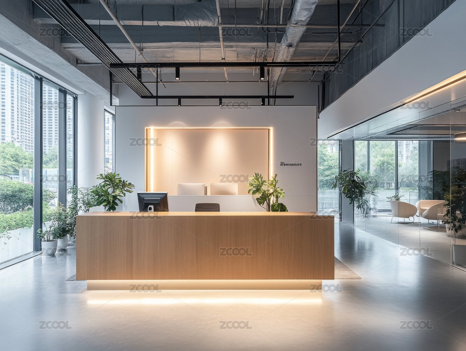 办公室,室内,设计,现代,简约,灯光,植物,桌子,接待台,天花板